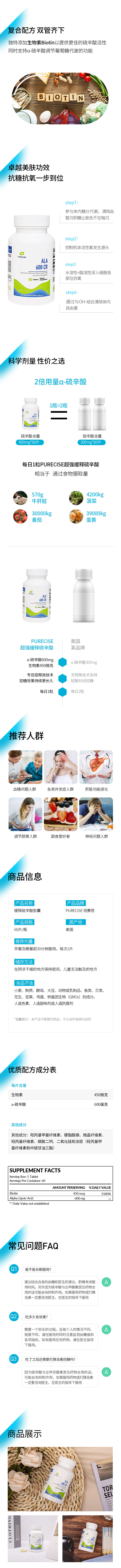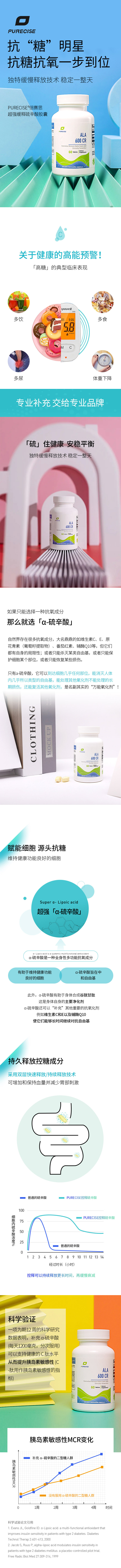 【缓释硫辛酸】α-硫辛酸 ALA 600 CR 60粒 控释全天释放 血糖健康支持 Purecise倍赛思