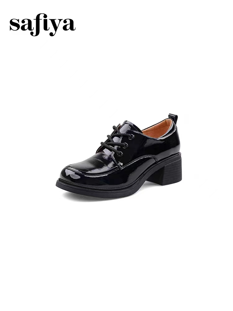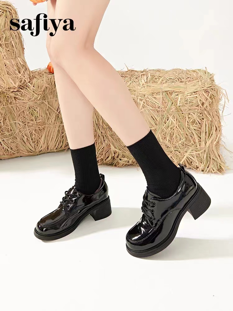 索菲亚2023酷飒英伦风摩登粗跟厚底女皮鞋