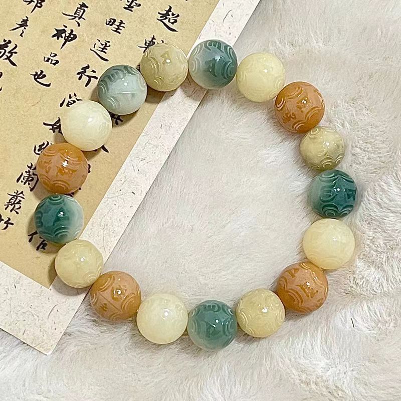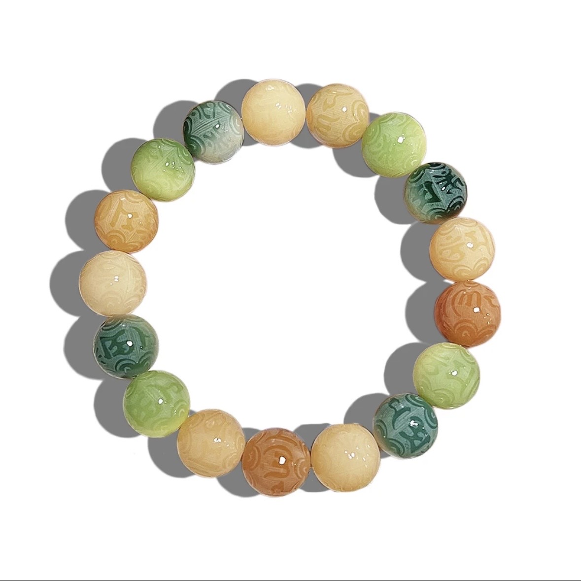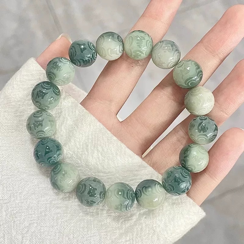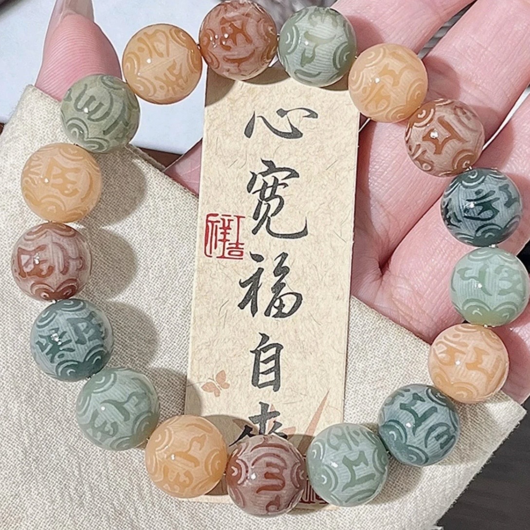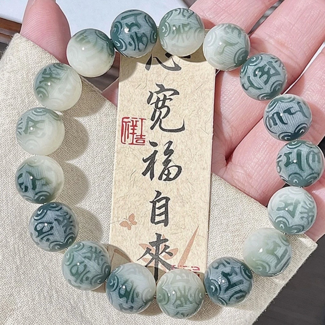 【敦煌六字真言菩提手串】敦煌福泽小众雕刻六字真言 绿飘花菩提子手串文玩佛珠