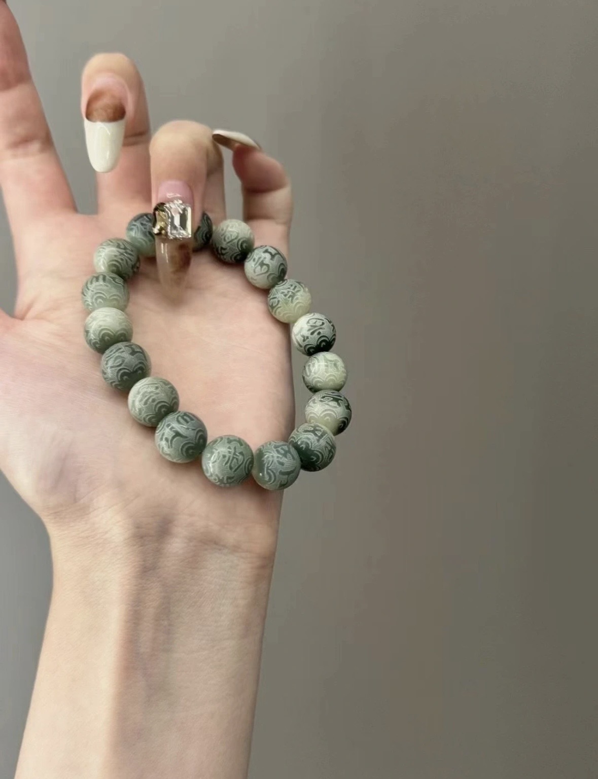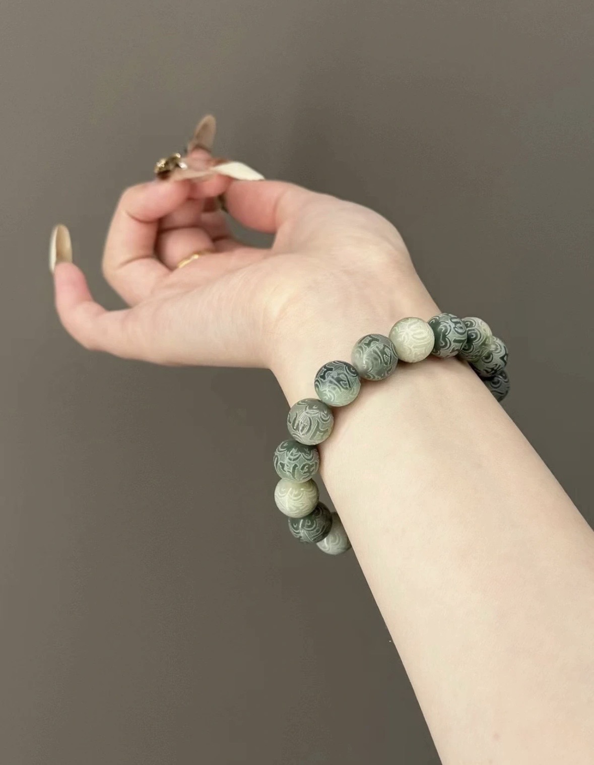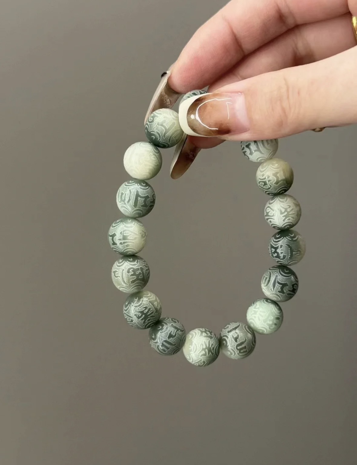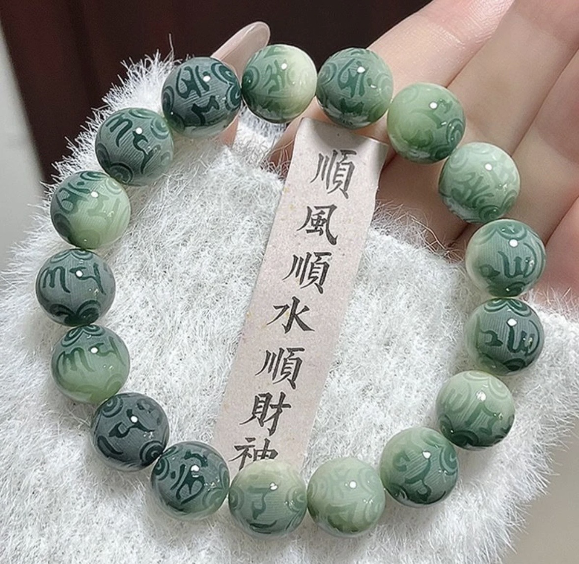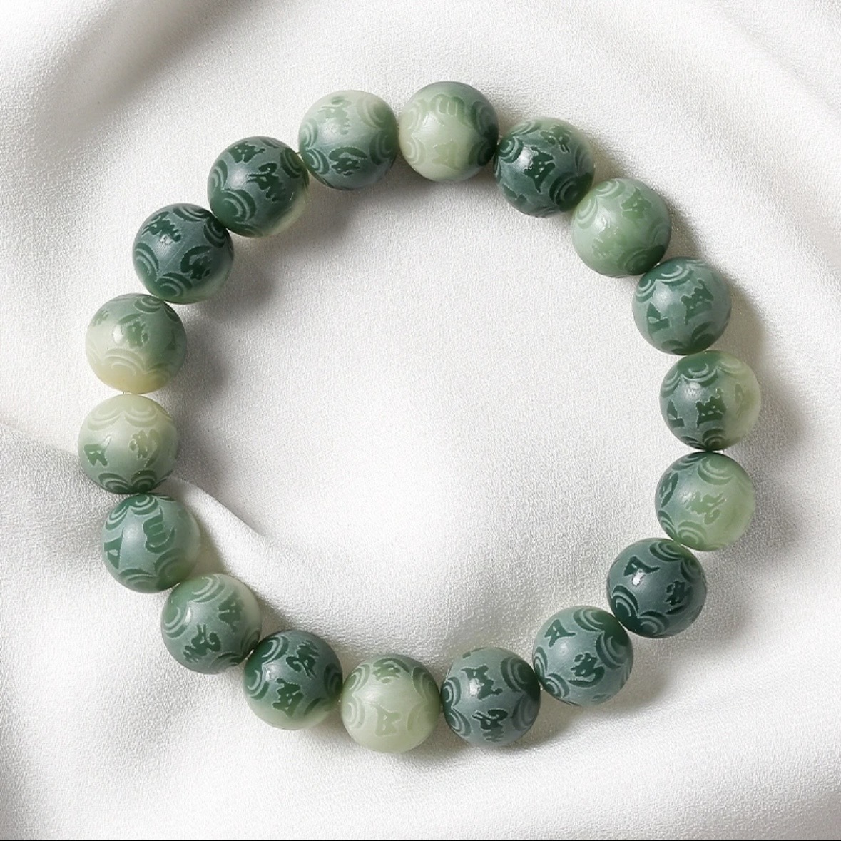 【品名】敦煌绿飘花·六字真言菩提手串