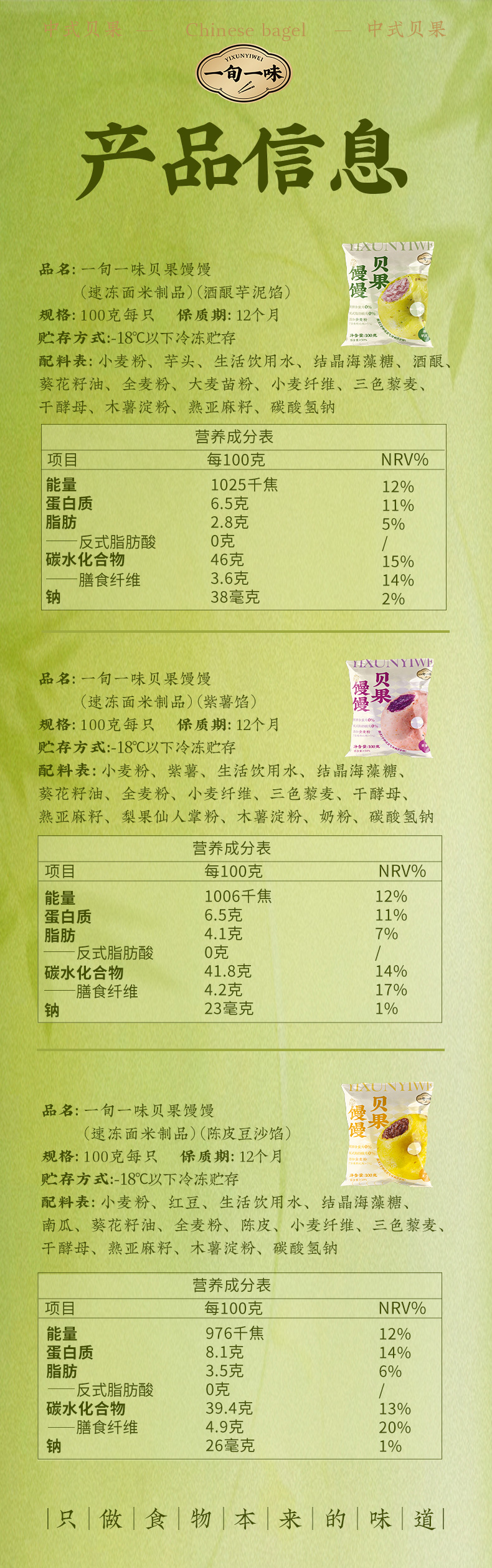 一旬一味 贝果馒馒 酒酿芋泥/紫薯/陈皮豆沙 100g多规格