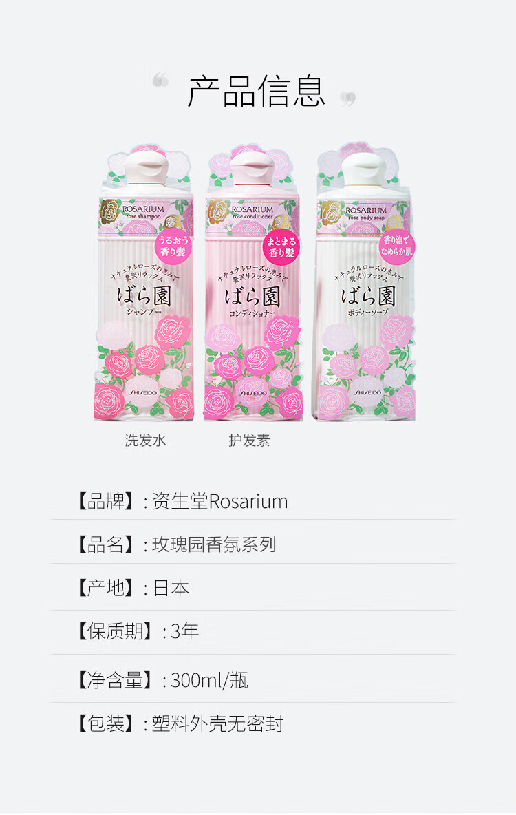 【保税仓】资生堂rosarium玫瑰园天然玫瑰香洗发水300ml/瓶