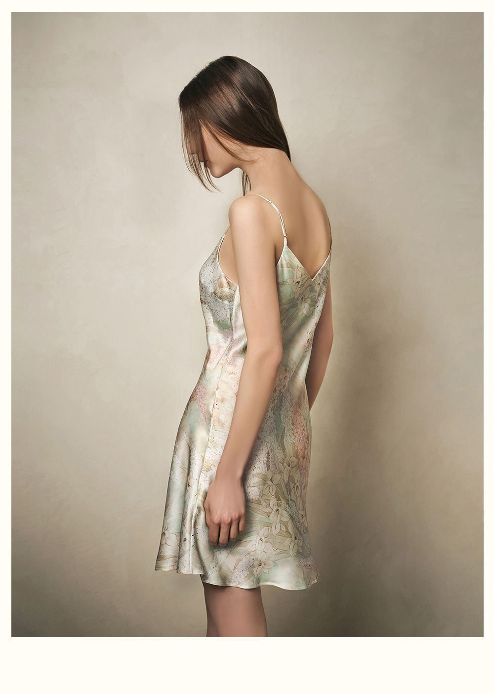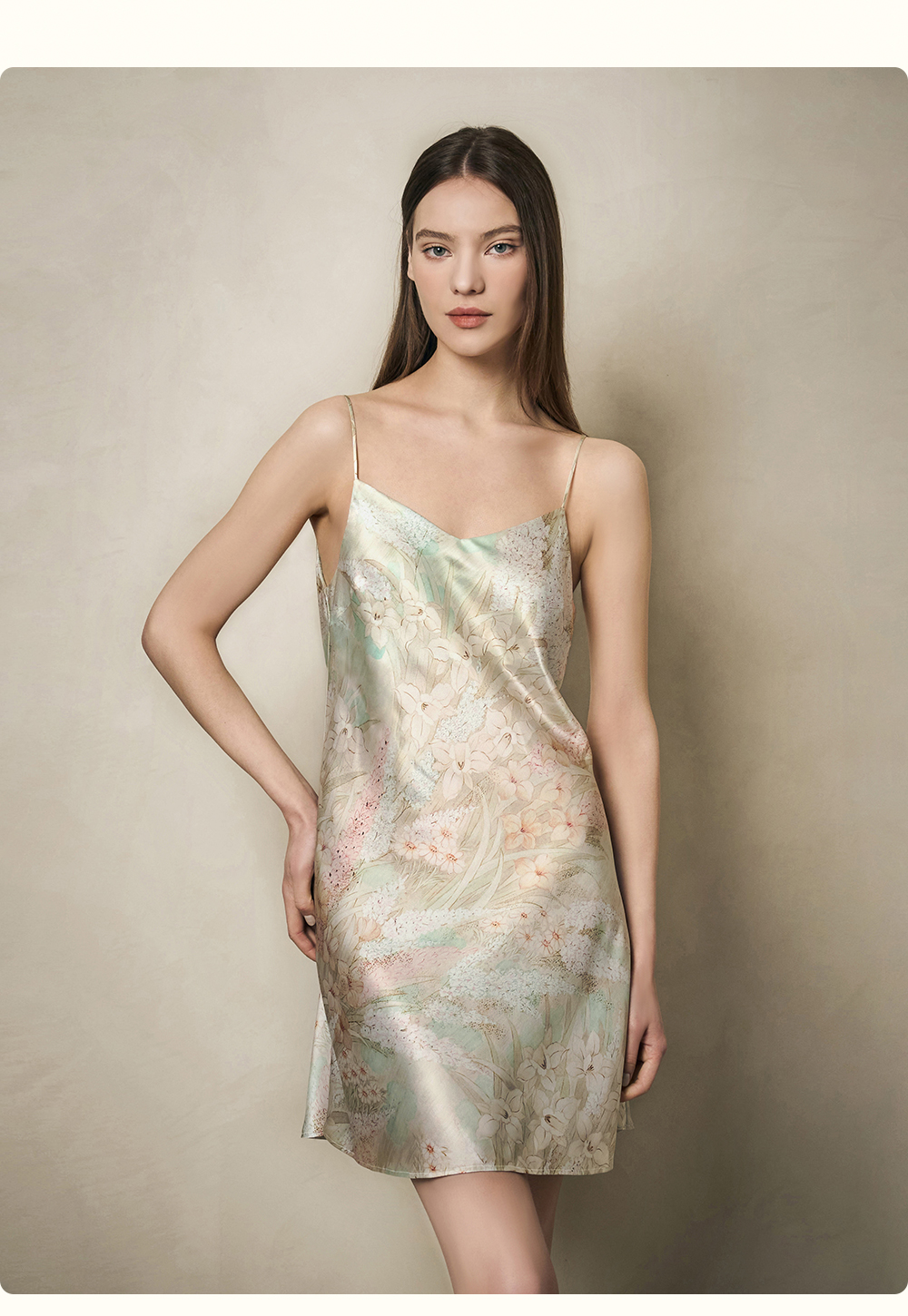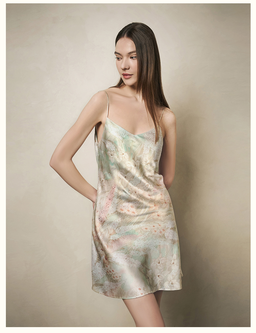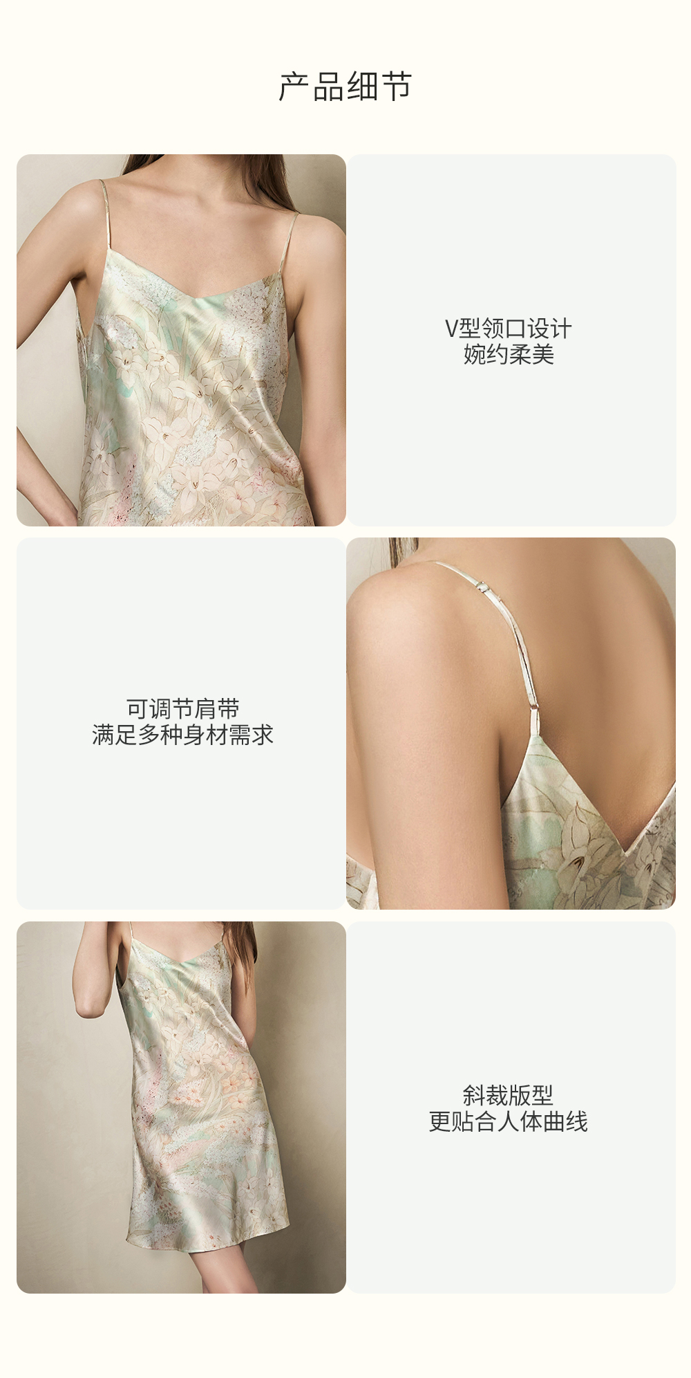 Solo seta22姆米女士真丝印花睡裙桑蚕丝吊带短裙2025年秋冬新款