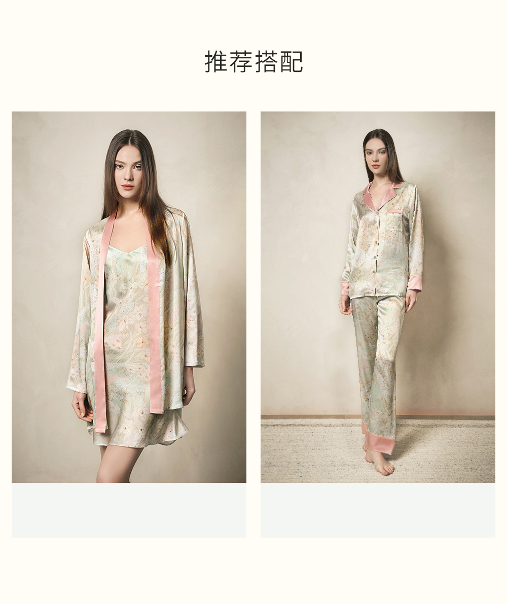 - soloseta专注于真丝织物,灵感源自意大利语,中文含义为“只做真丝”的意思。让睡衣变时尚,居家和外出瞬间切换,使其更具有出街,度假,参加宴会等功能。