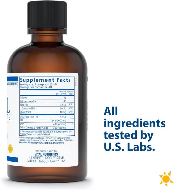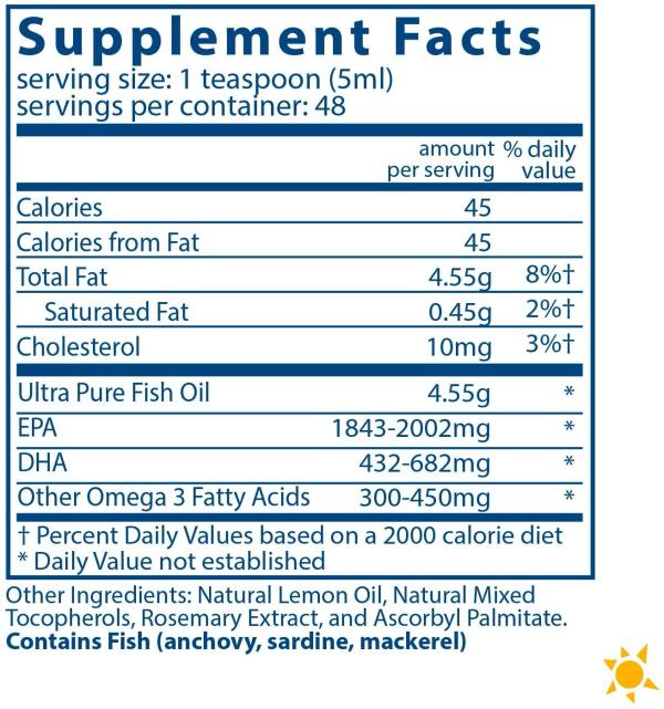 Ultra Pure Fish Oil 2600以液态提供了极高的EPA和DHA浓度,非常适用于那些每天不喜欢服用多个软胶囊或吞咽大颗粒丸剂的用户。