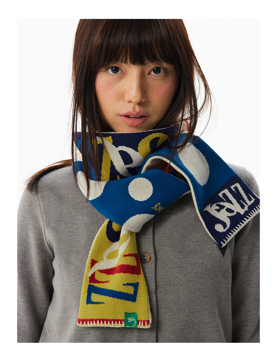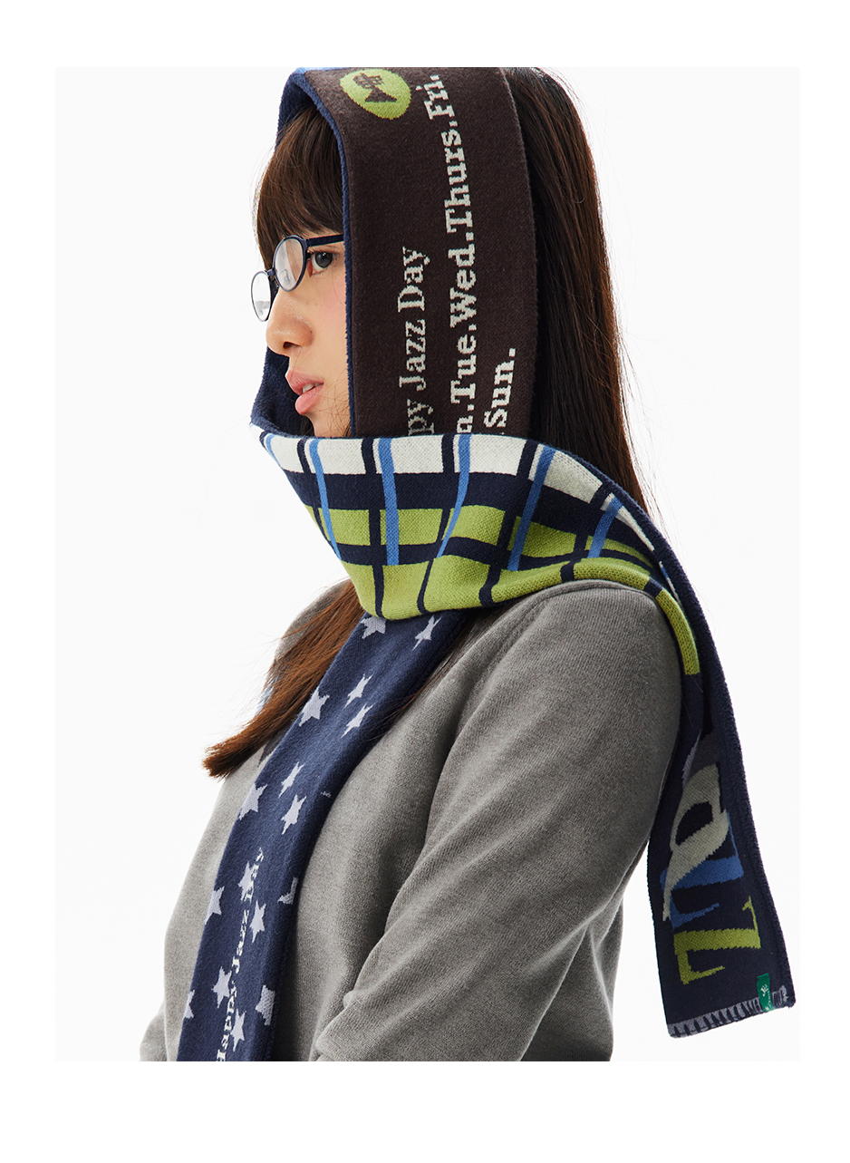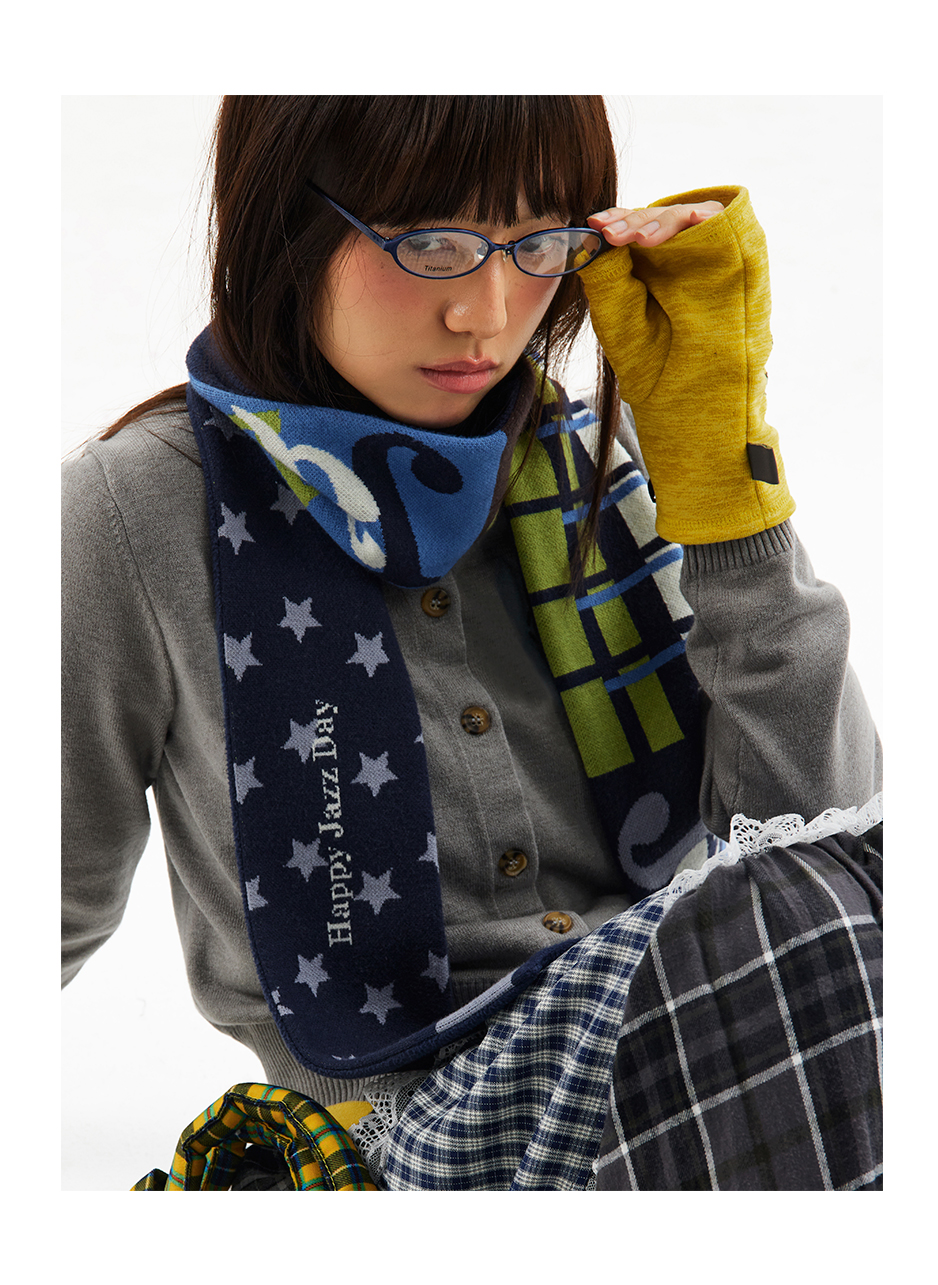 CryingCenter 摇粒绒拼接针织双面复古 彩色糯感小围巾冬日百搭