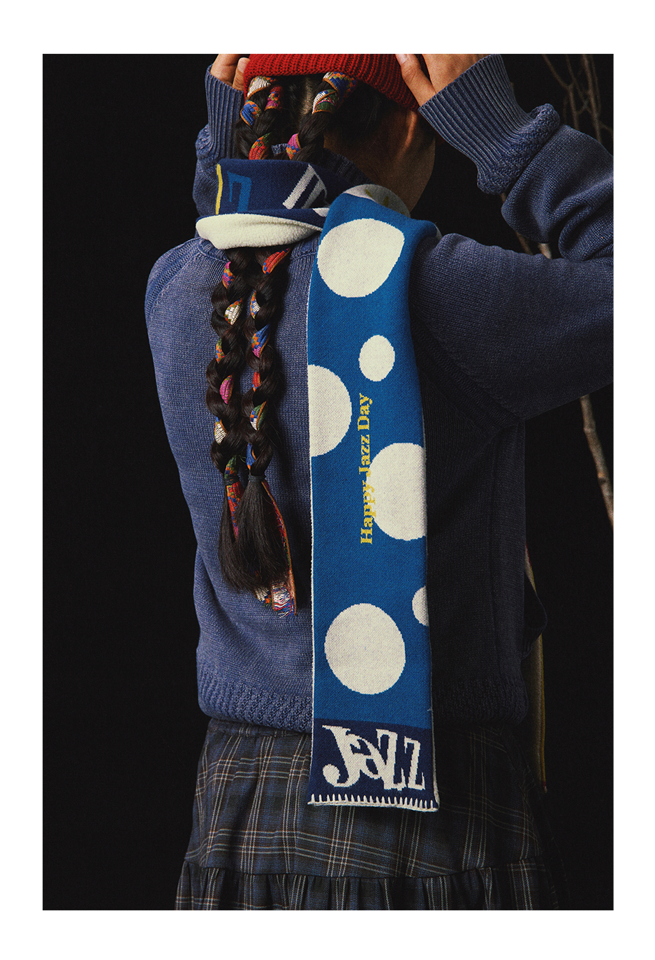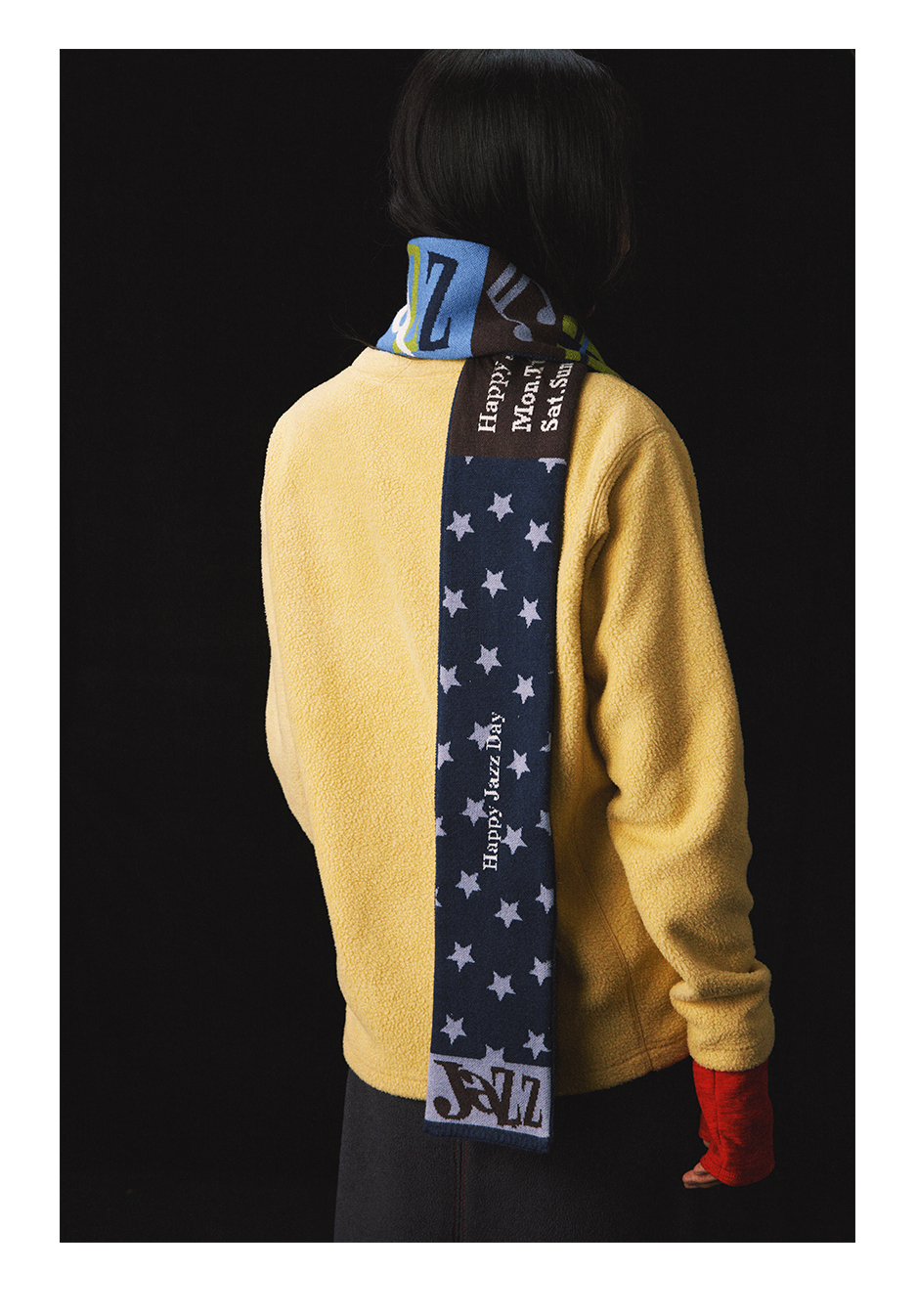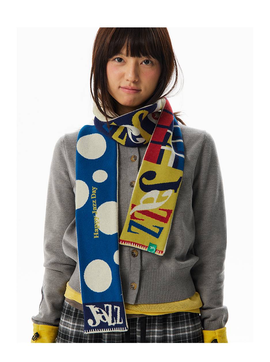 CryingCenter 摇粒绒拼接针织双面复古 彩色糯感小围巾冬日百搭
