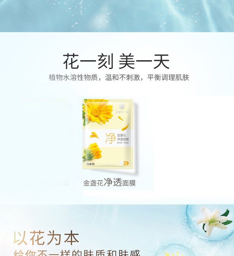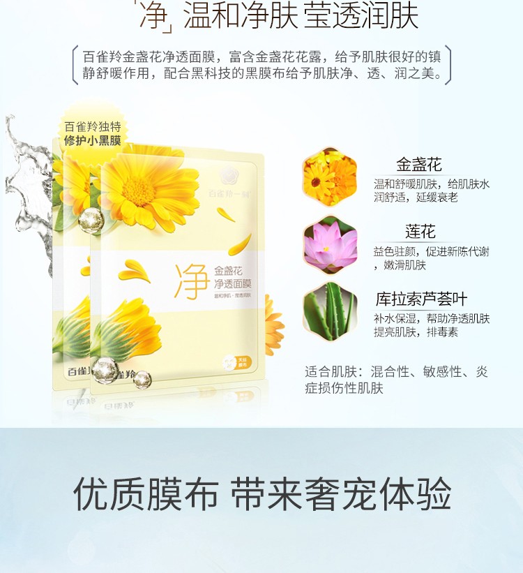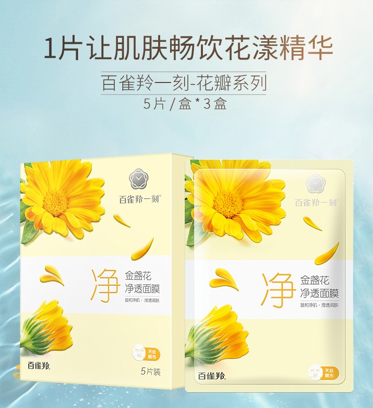 百雀羚 面膜 金盏花净透面膜 补水保湿 提亮肤色 5片*3盒