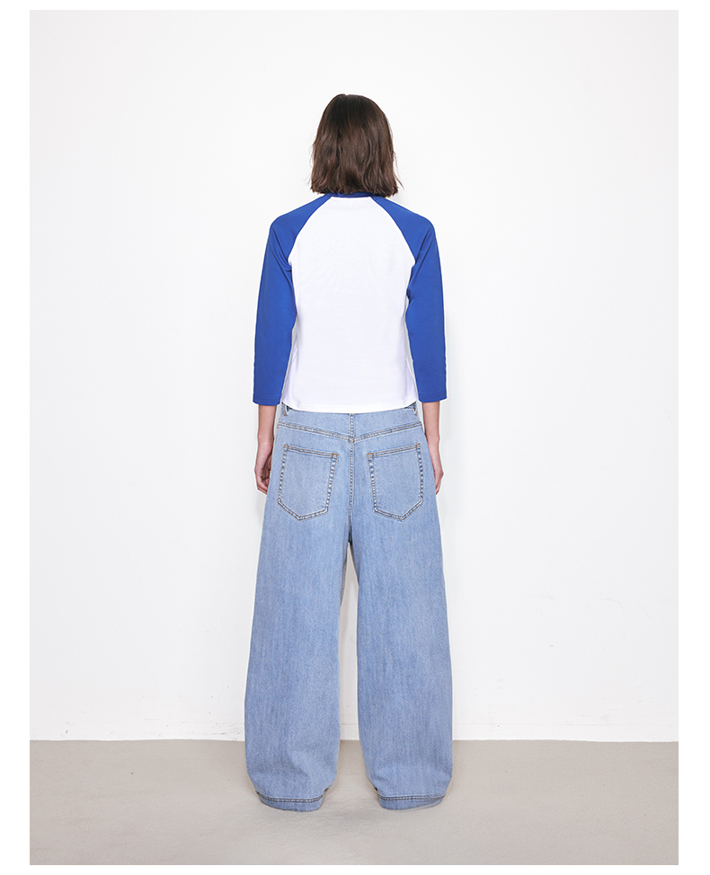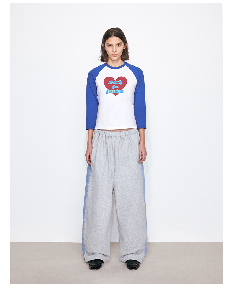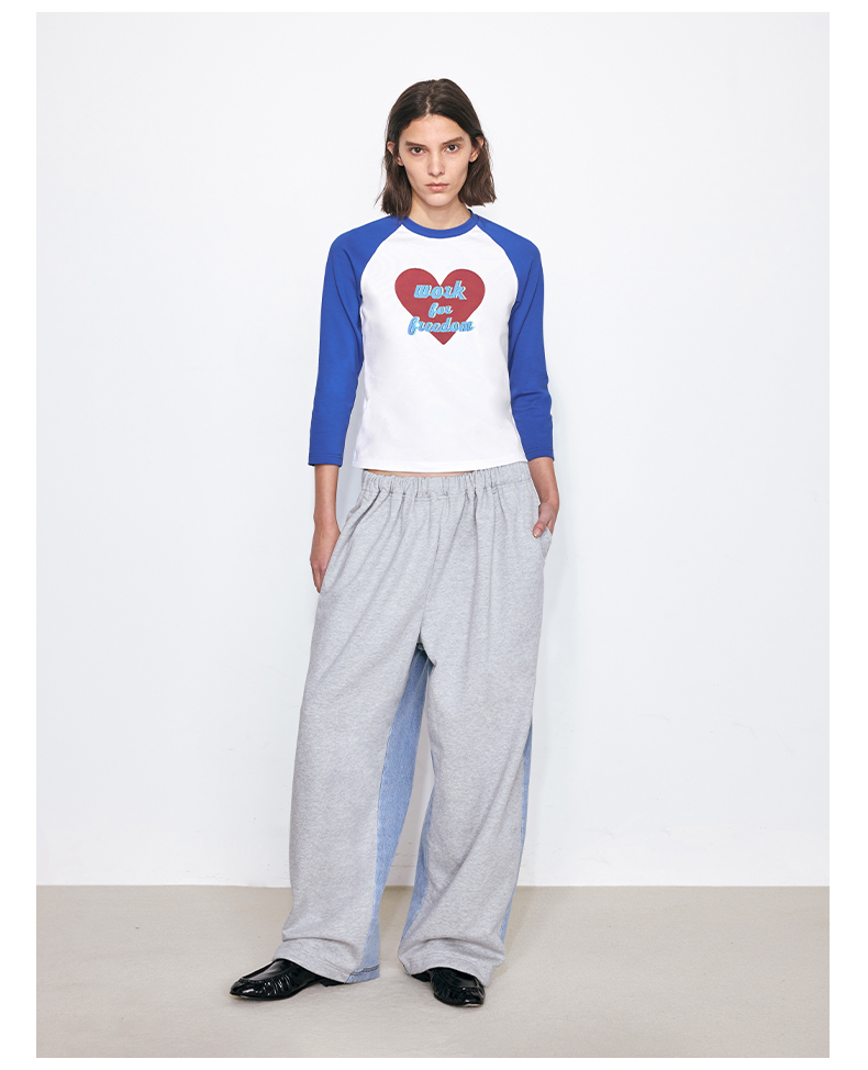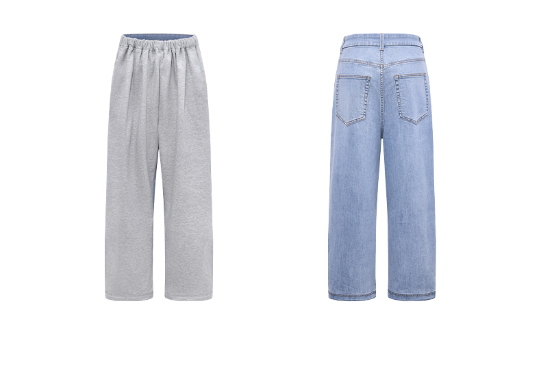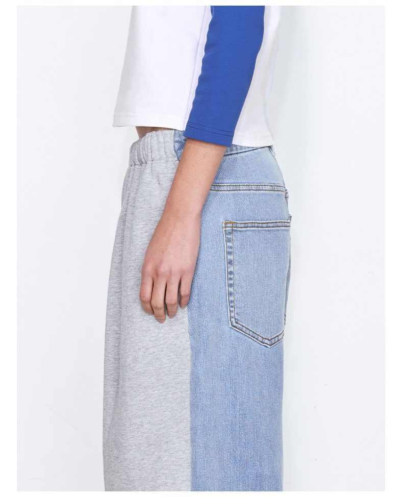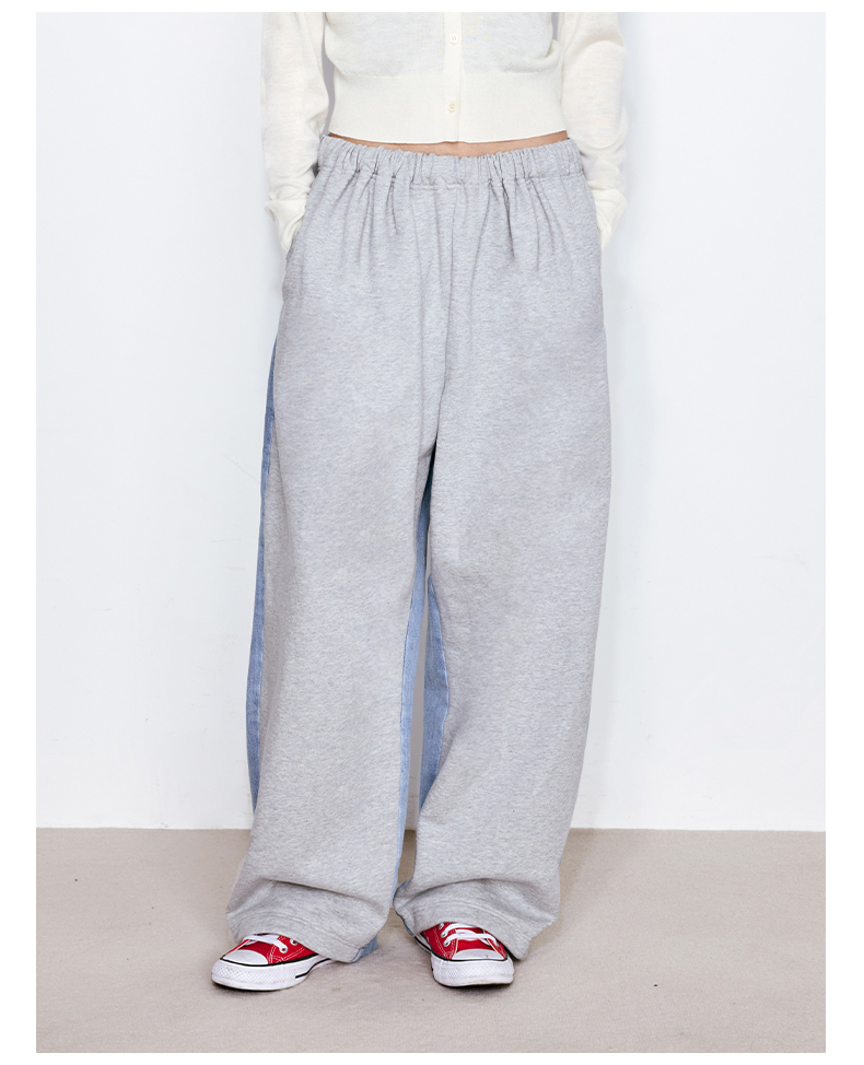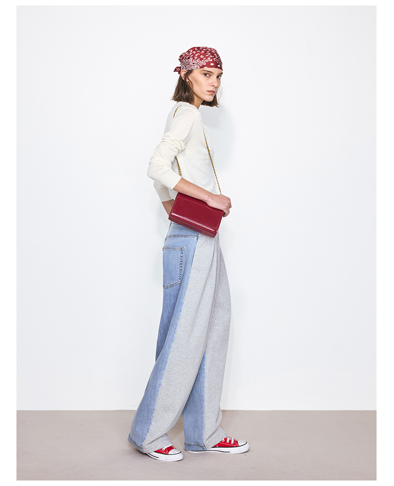 NUTH宽松牛仔拼接可束脚抽绳卫裤女 花灰拼水洗蓝
