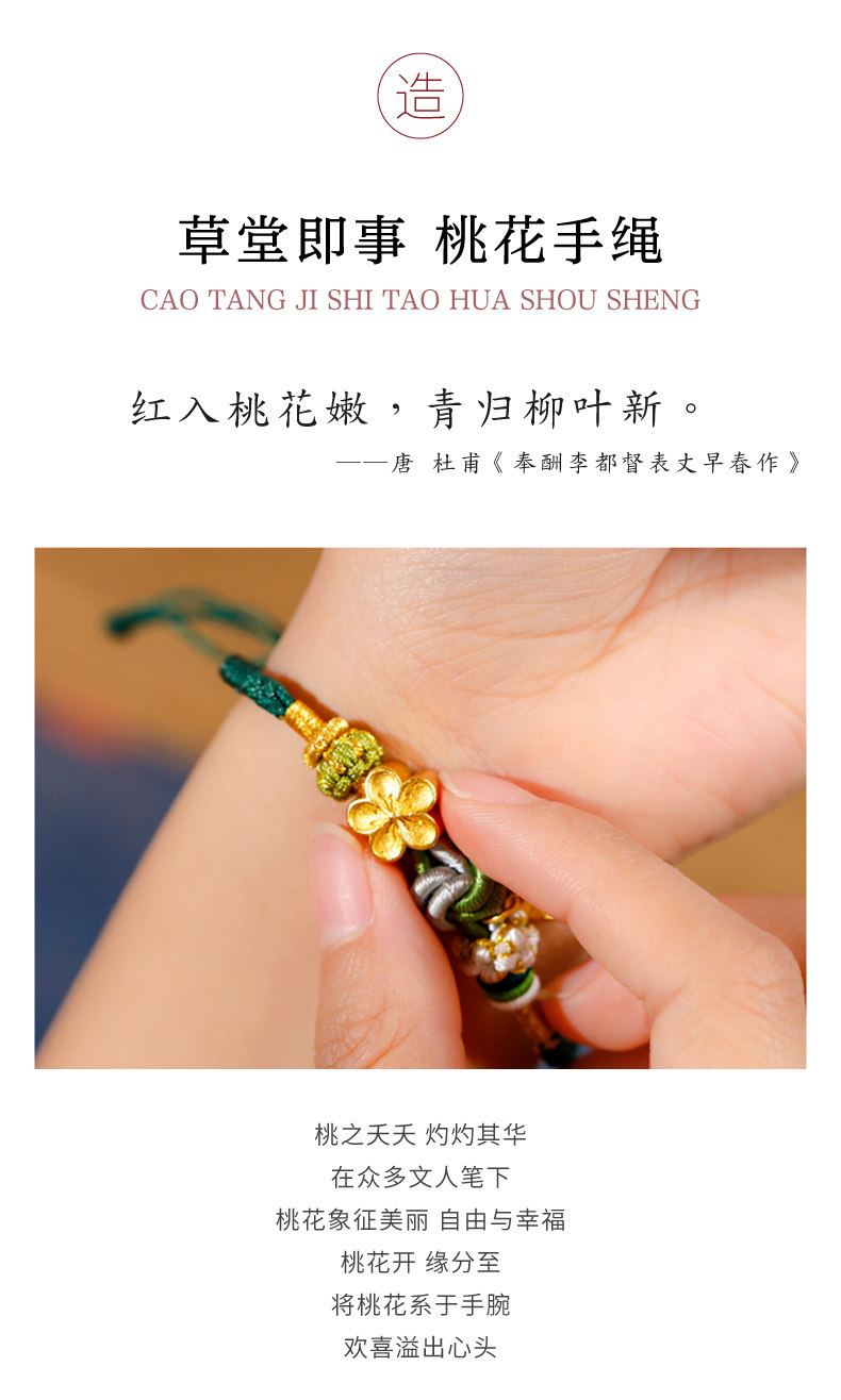 杜甫草堂 草堂即事·桃花手绳手串女款手链轻奢小众精致送女友