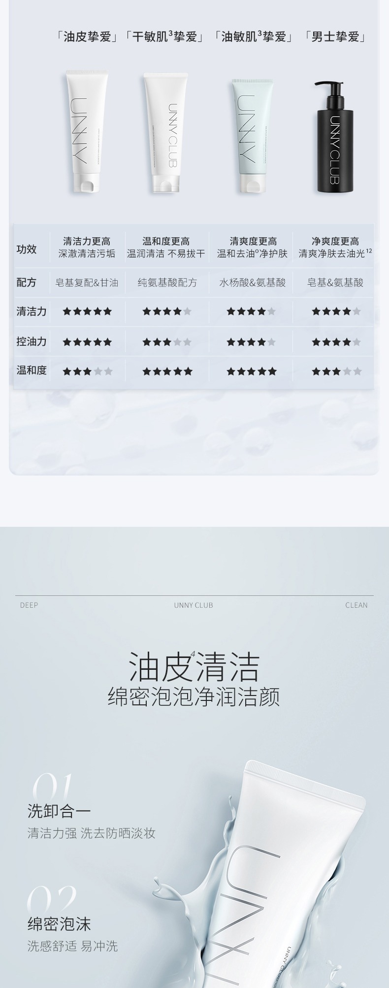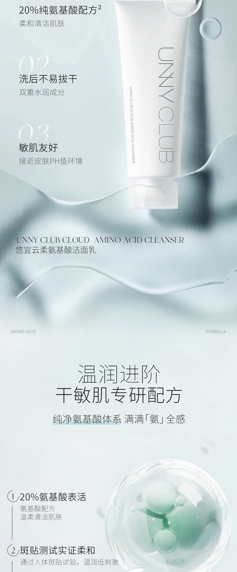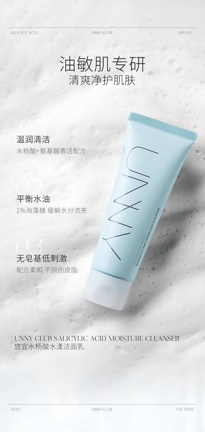 UNNY氨基酸洗面奶温和清洁脸部污逅学生洁面乳 心选到家