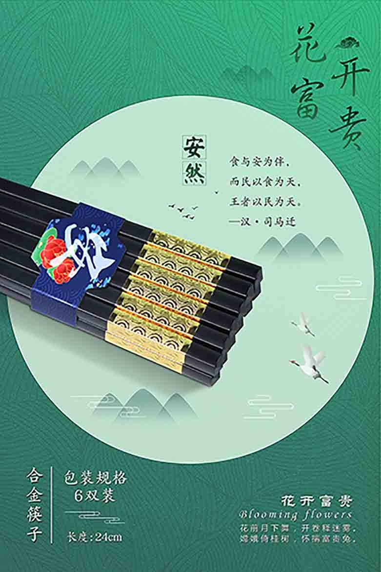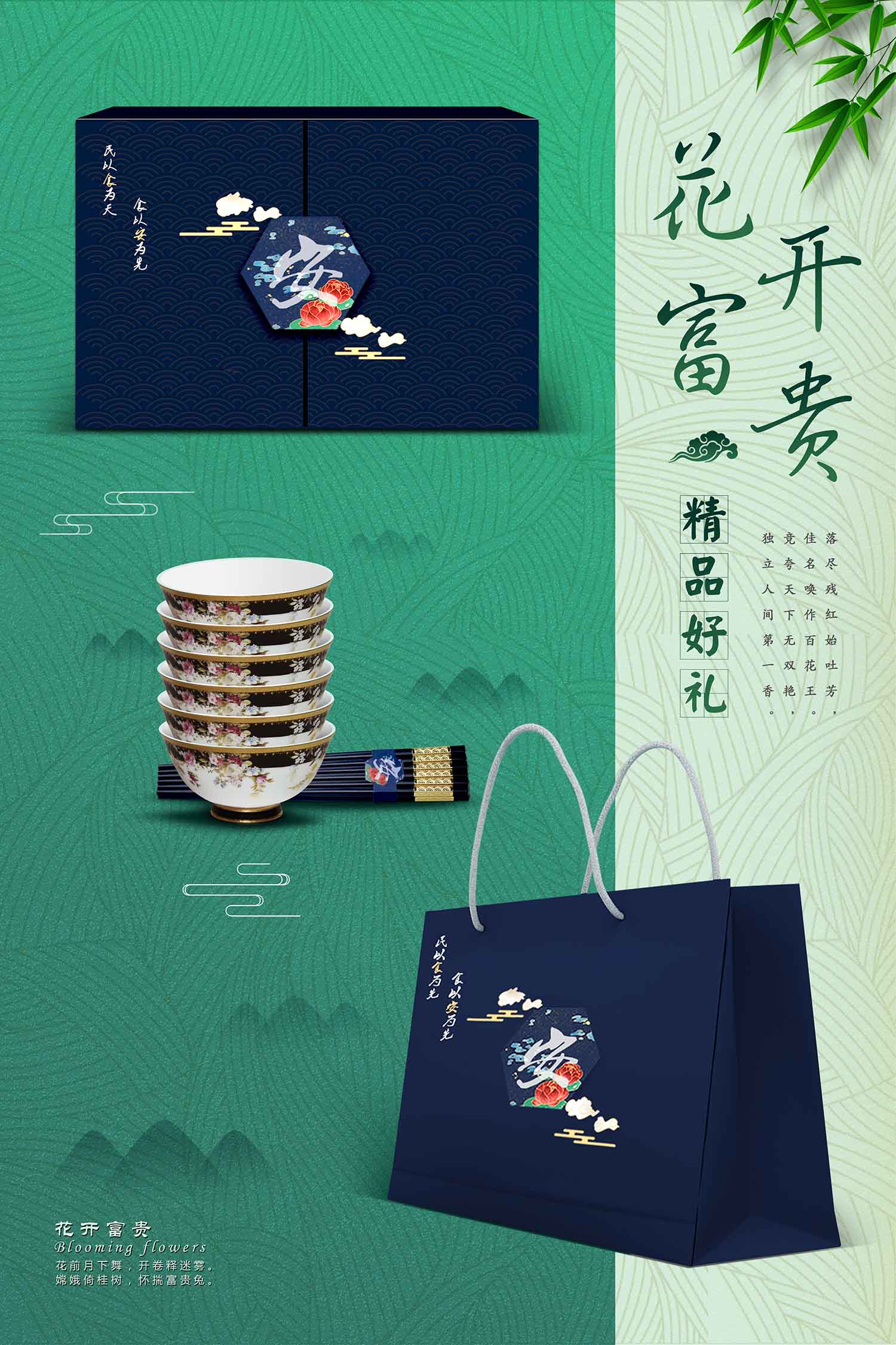 HELLO KOMA 骨瓷6件套金边防烫6碗 花开富贵骨瓷套装 KL-003 6碗,6筷