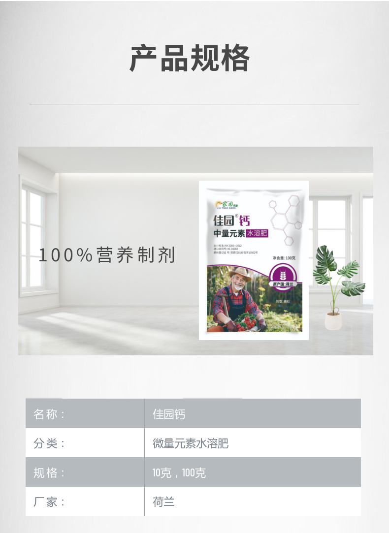 佳园钙 EDTA鳌合钙 中量元素水溶肥 100克/袋