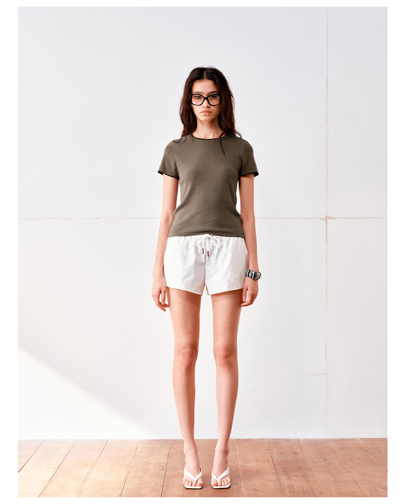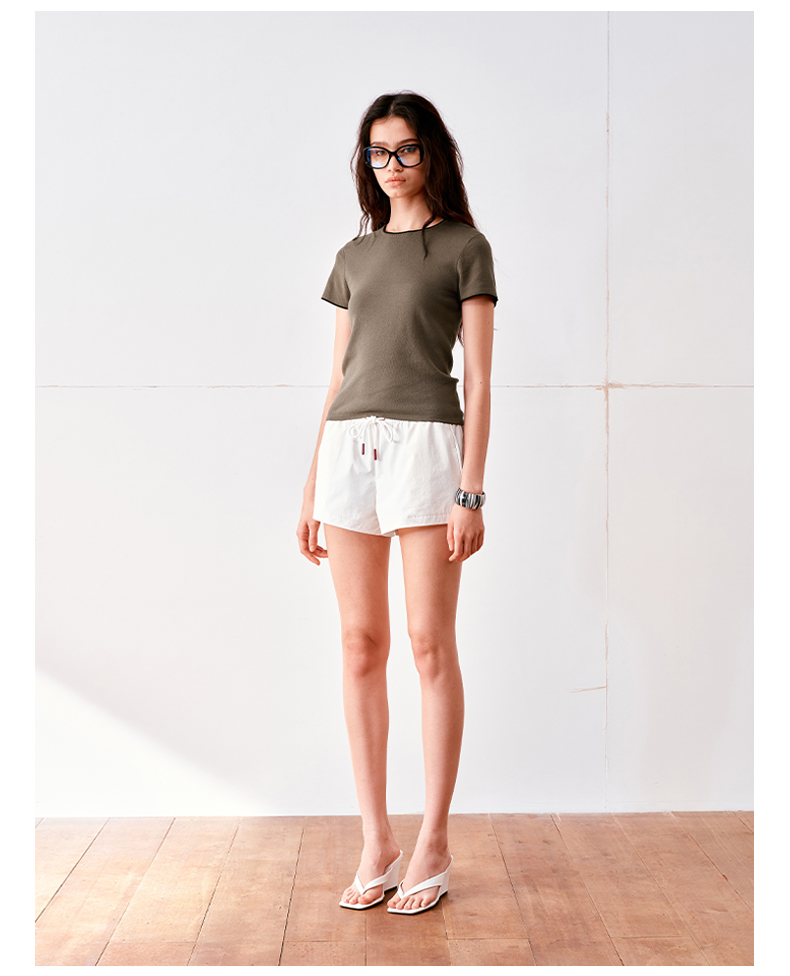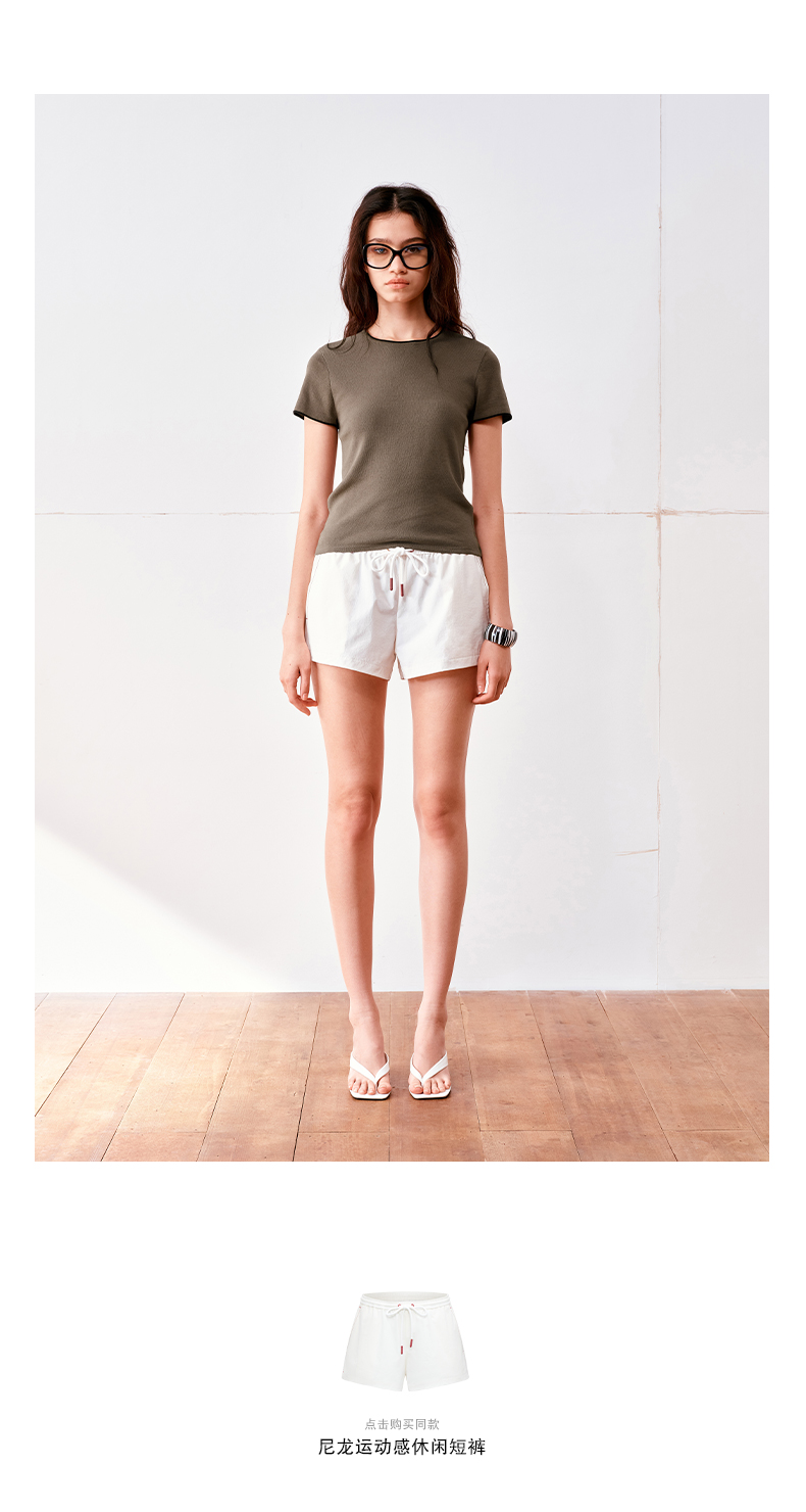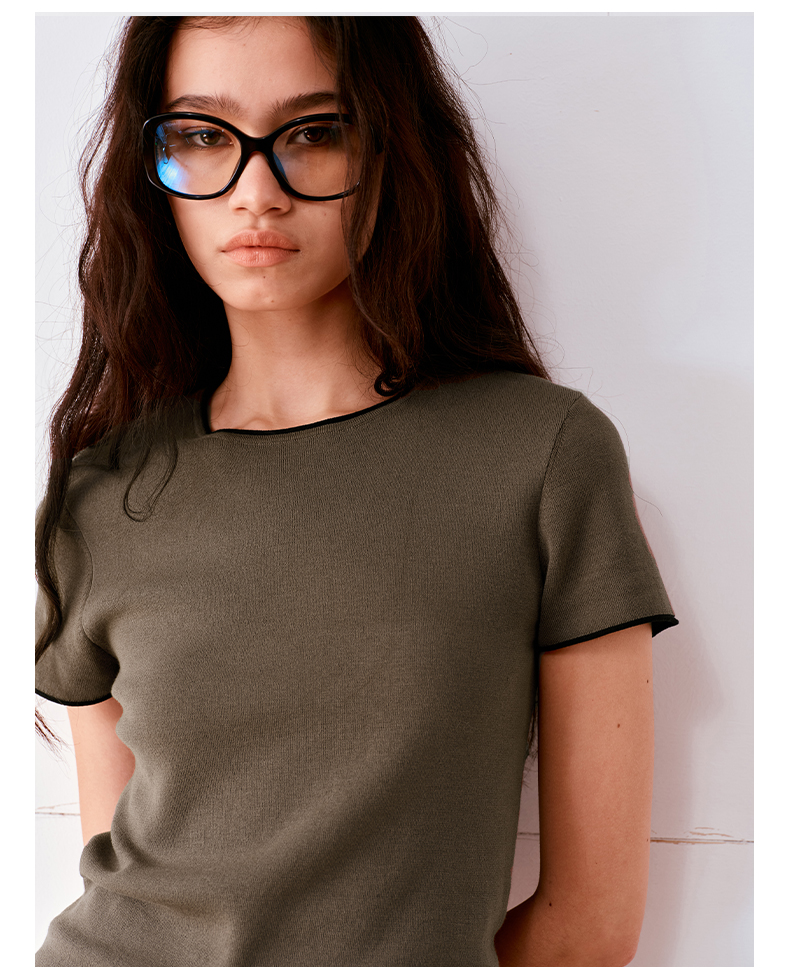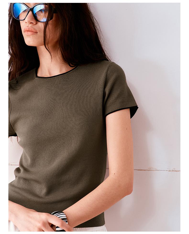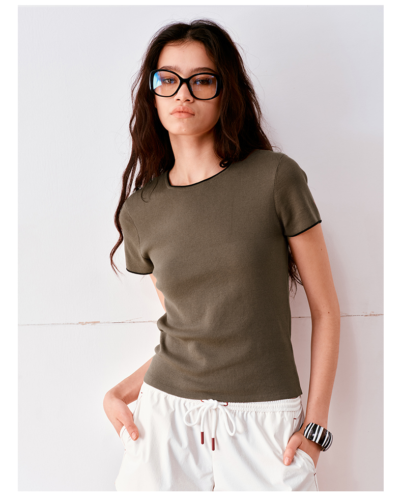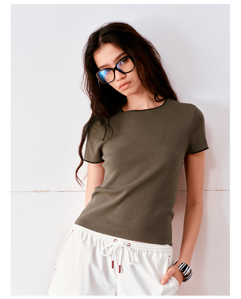 NUTH花灰色假两件拼接修身针织长袖上衣女