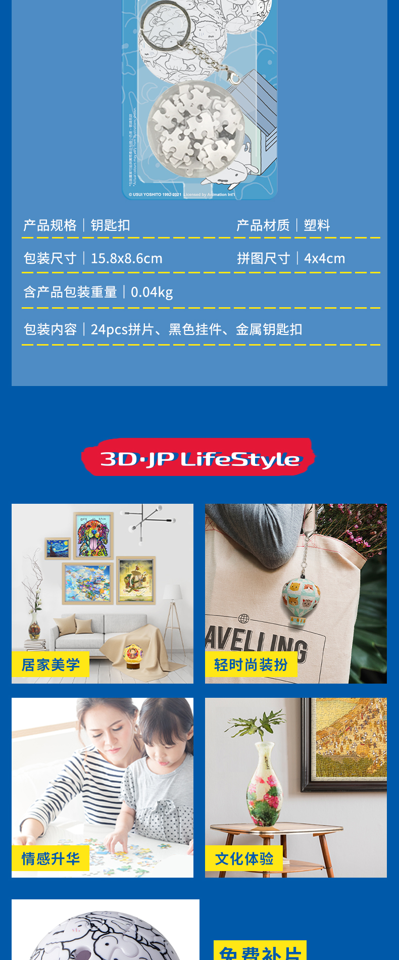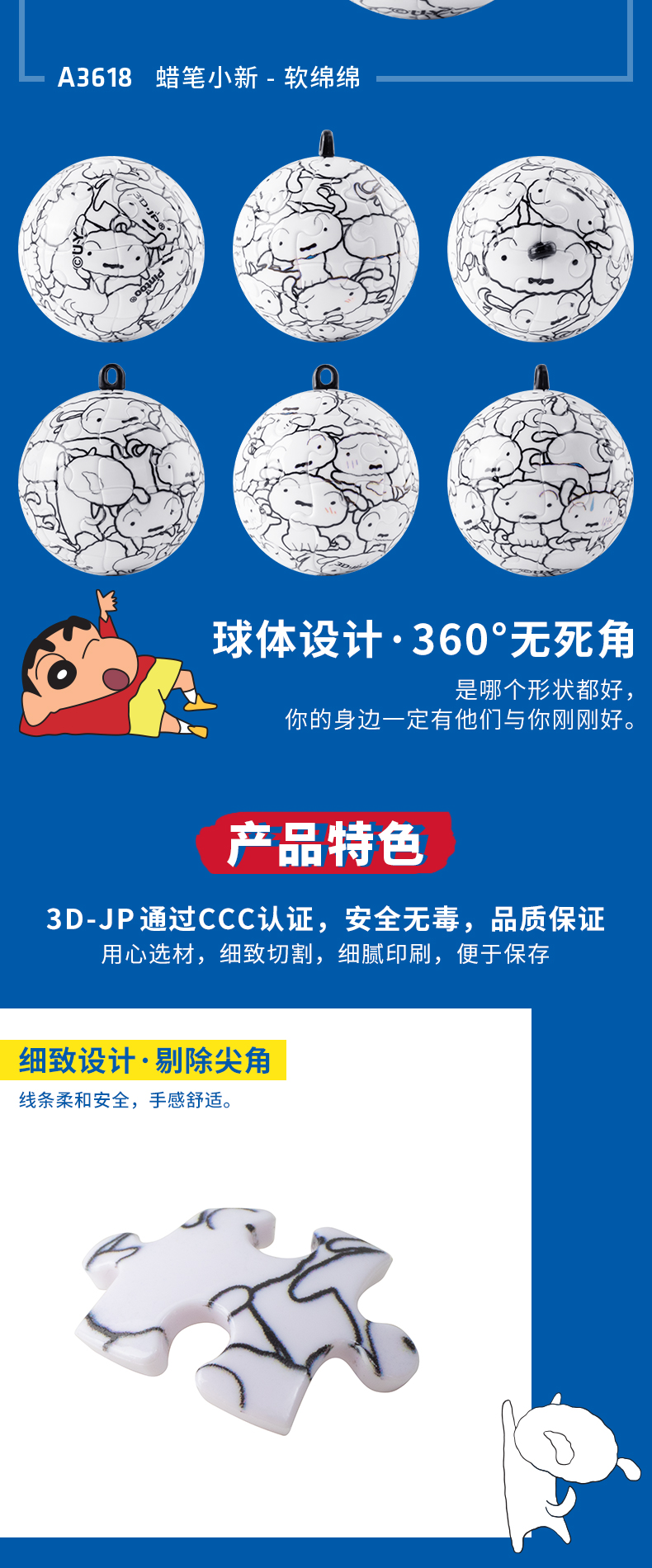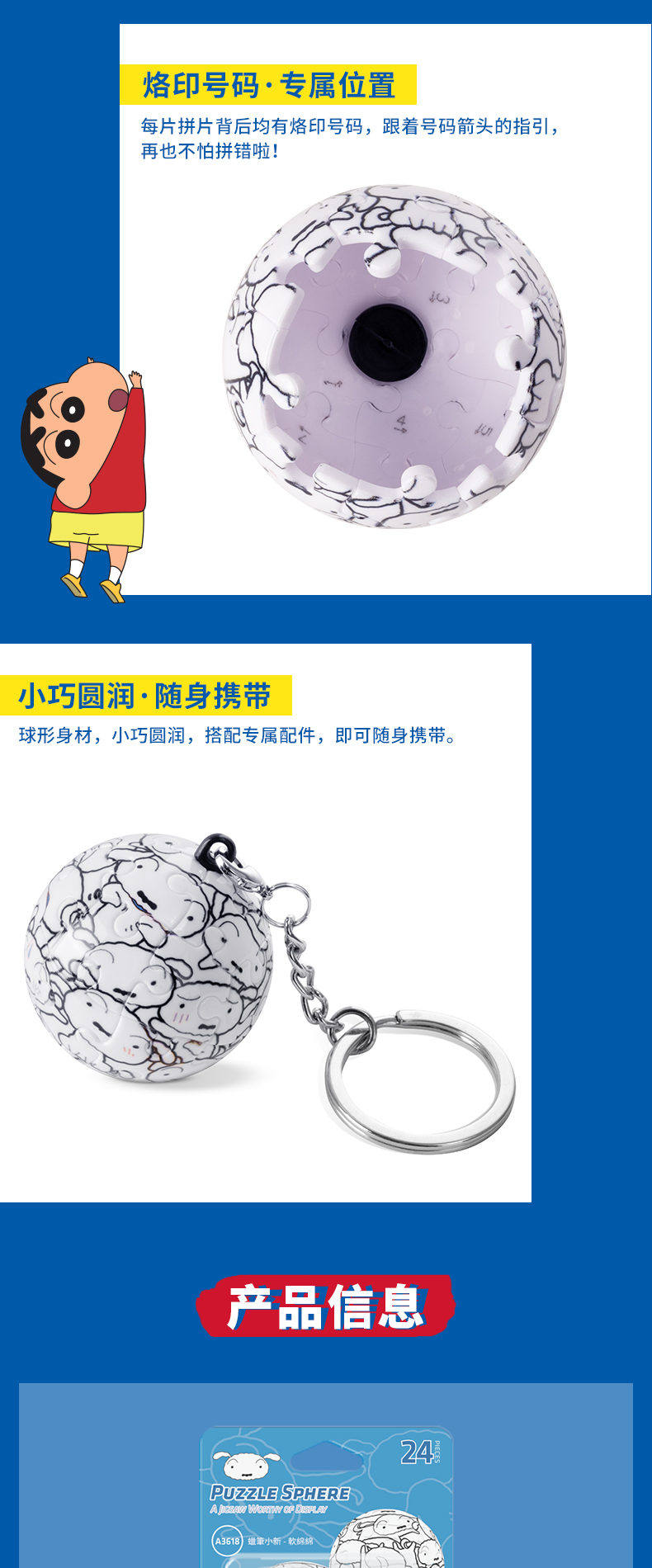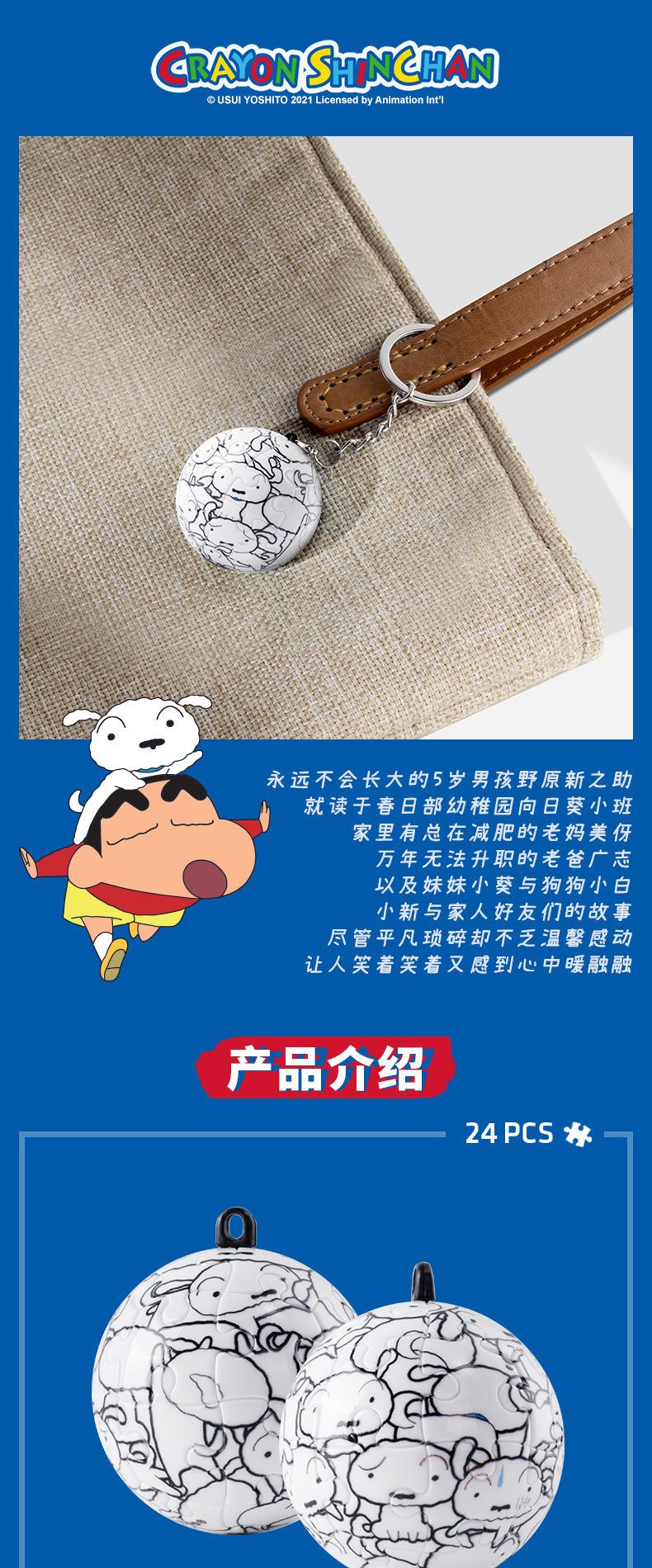 24片 钥匙扣拼图 塑料拼图 A3618 蜡笔小新- 软绵绵