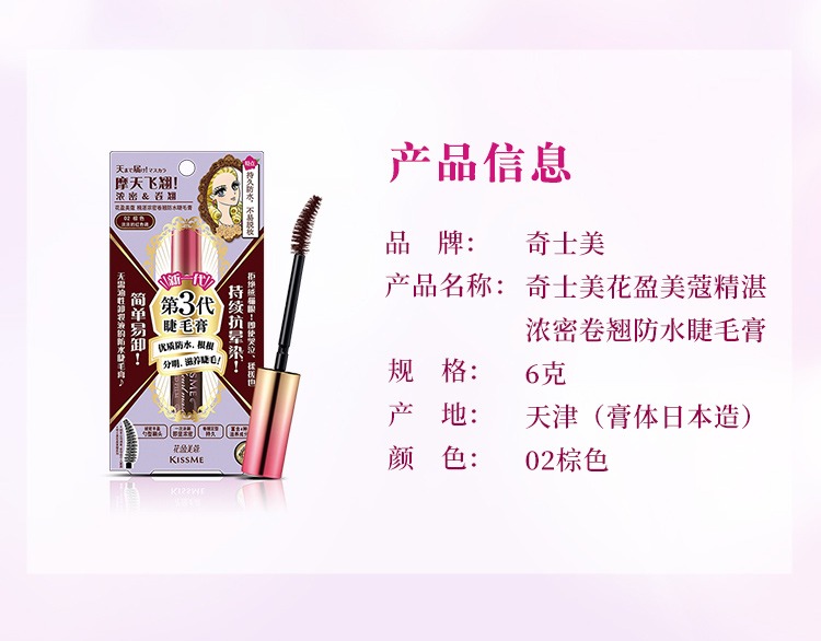 【特卖】Kissme 奇士美 花盈美蔻精湛纤巧卷翘防水睫毛膏(02棕色)4.5g【保质期:2026年3月】