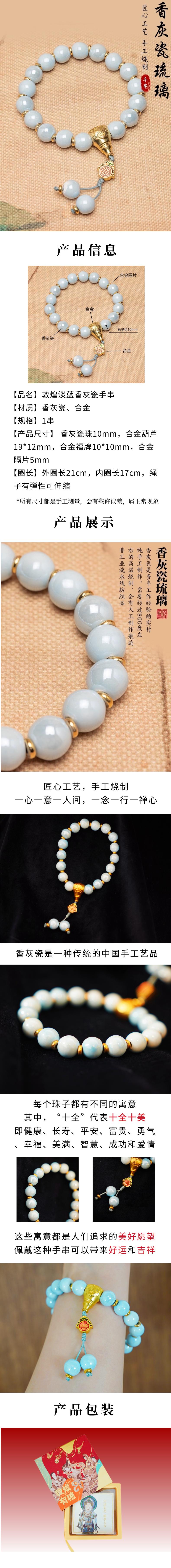 【敦煌淡蓝香灰瓷手串】敦煌福泽小众轻奢手串 中式国风香灰瓷手串