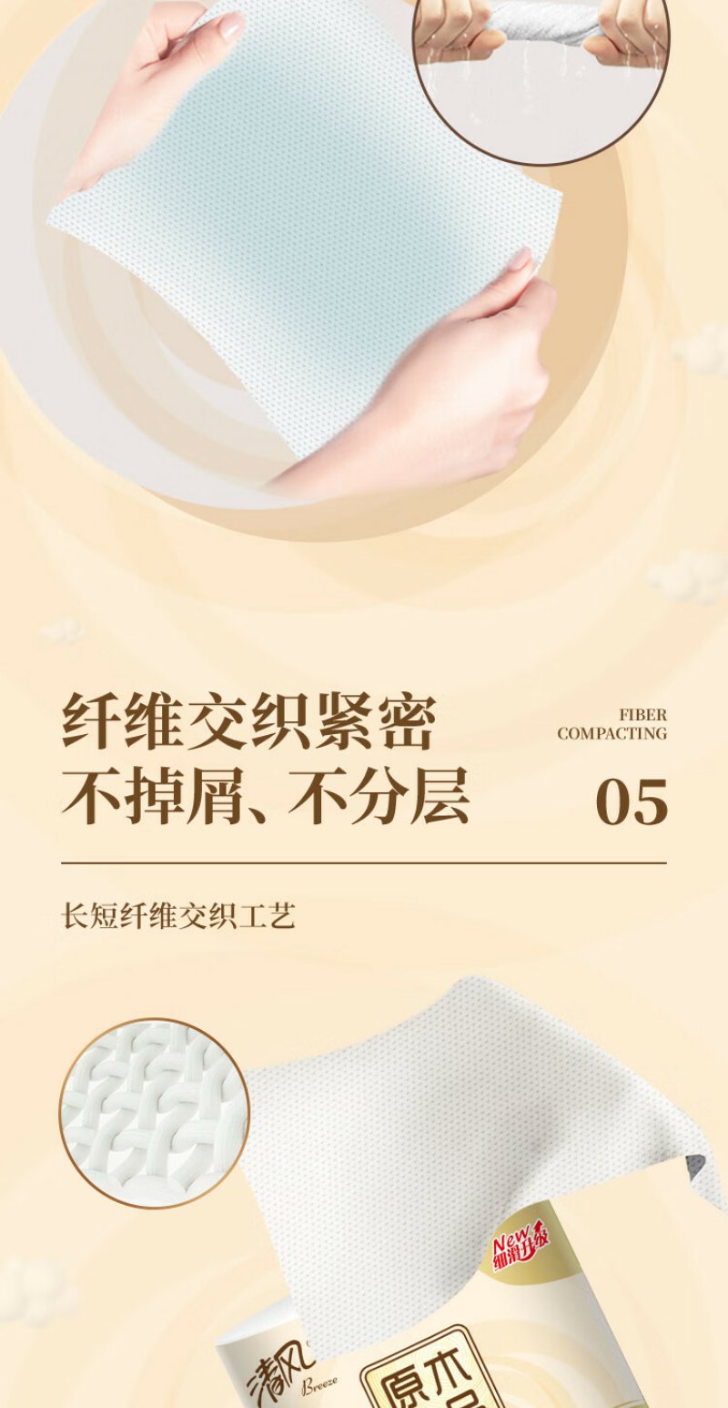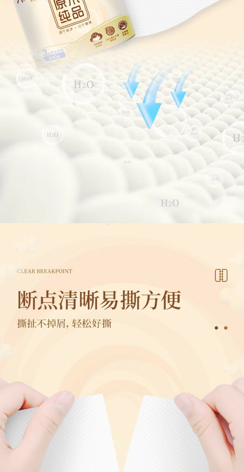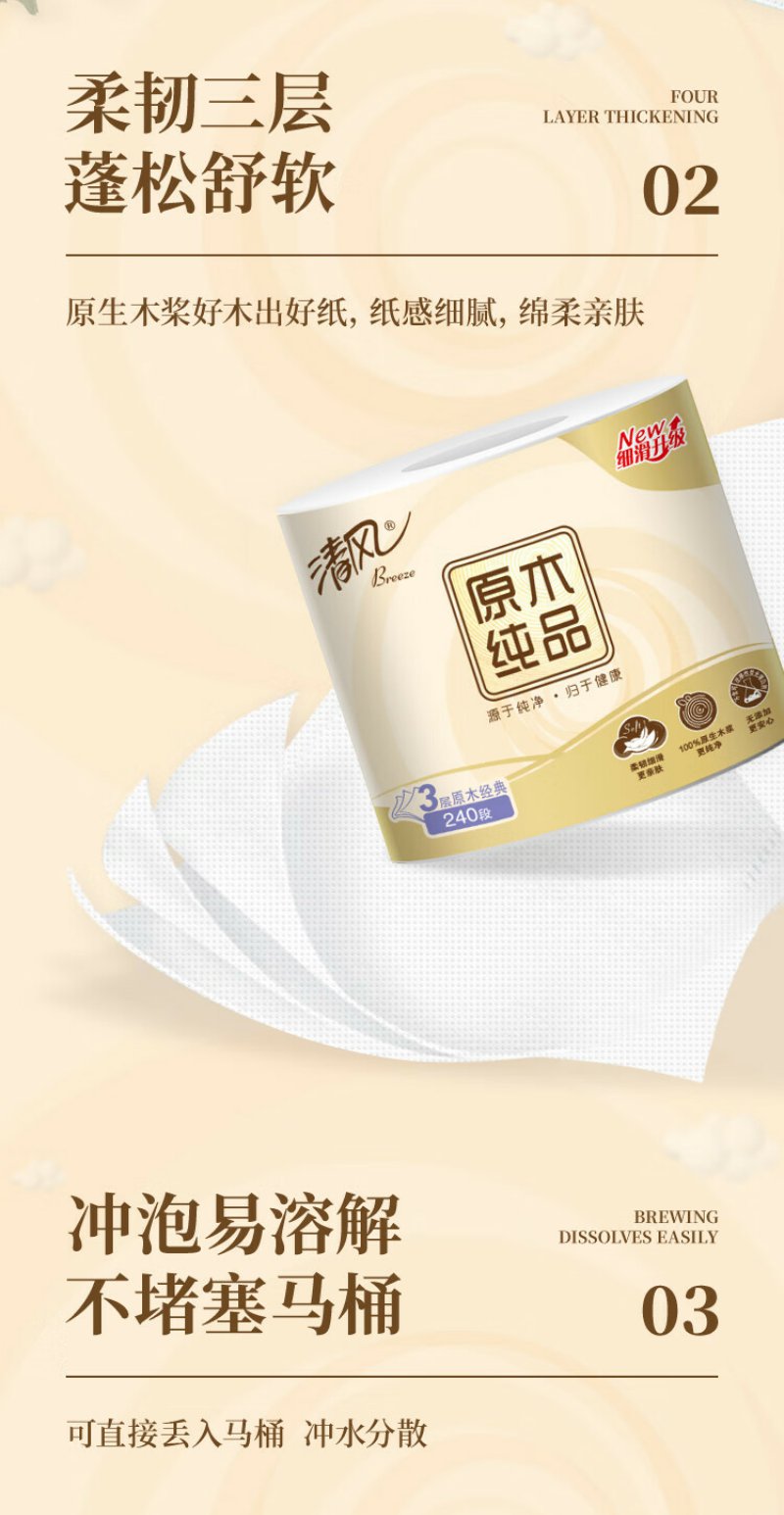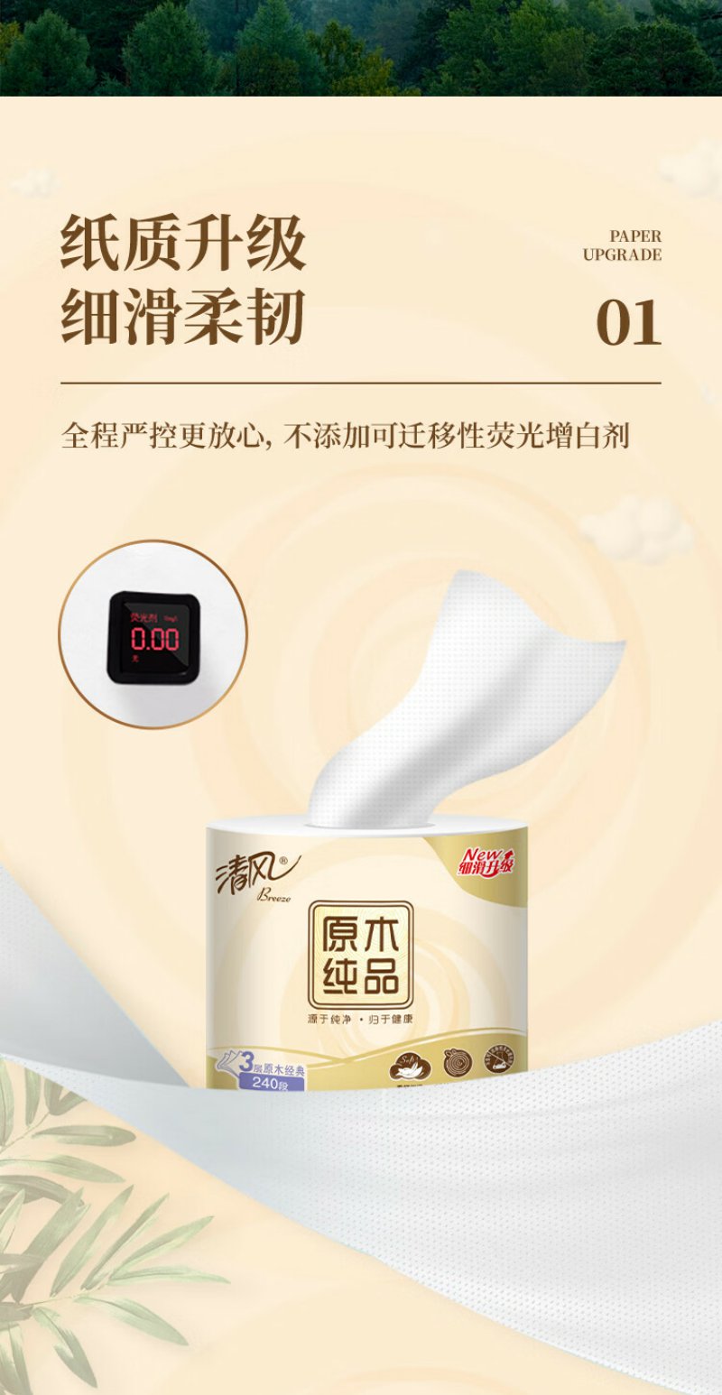 清风 原木纯品 有芯卷纸 3层240段10卷 家用卫生纸