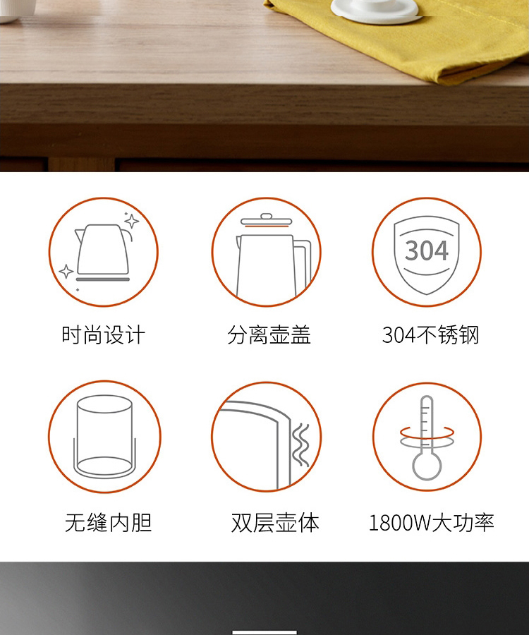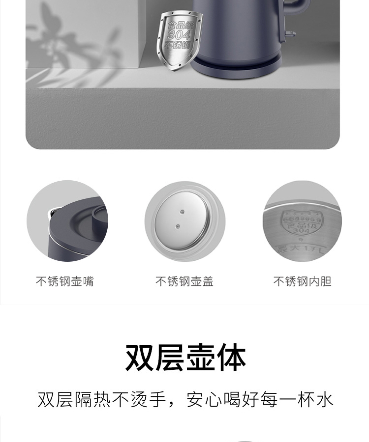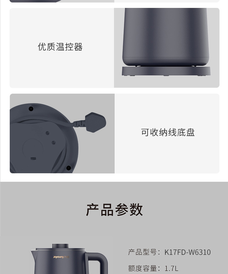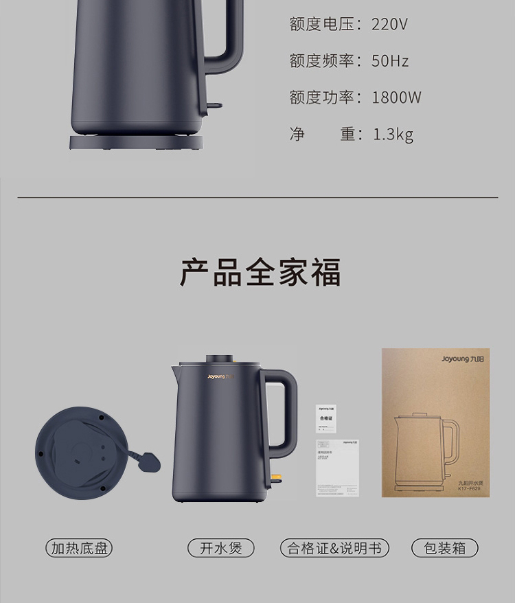 九阳(Joyoung) 热水壶烧水壶电水壶1.7L无缝内胆双层防烫家用电热水壶 K17FD-W6310