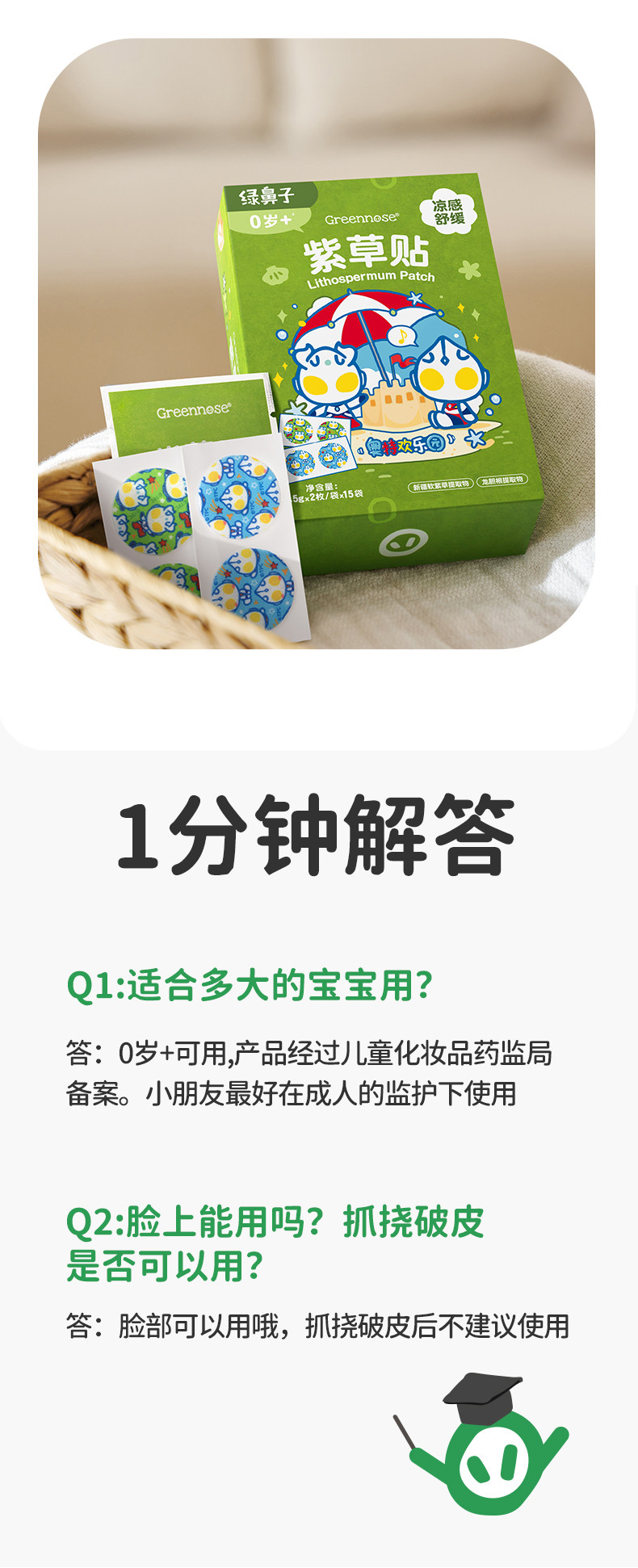 【会员秒杀】绿鼻子紫草舒缓贴婴儿专用儿童宝宝蚊虫蚊子叮咬止痒膏非驱蚊贴