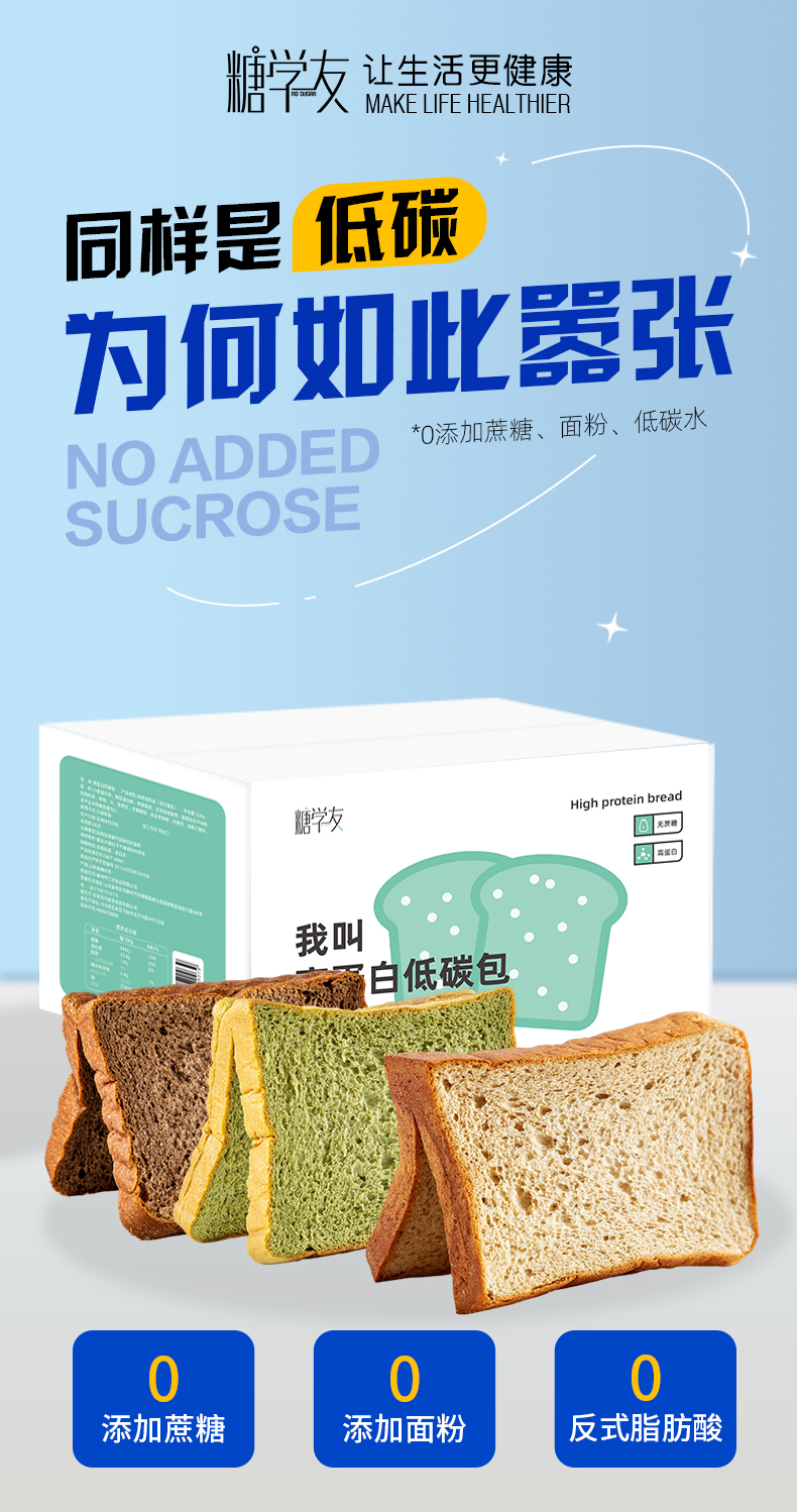 2糖学友高蛋白轻食生酮高蛋白吐司食品代餐吐司500g