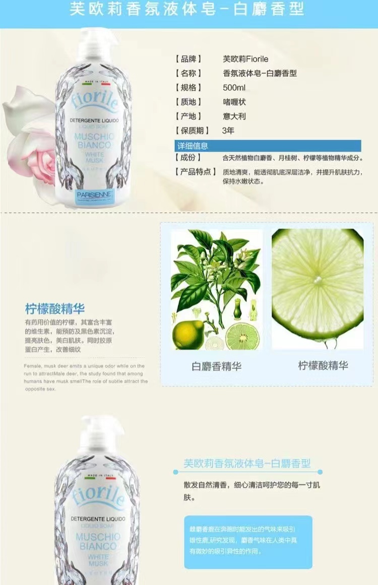 FIORILE芙欧莉香氛液体皂500ml 【白麝香香型/坚果油香型/果香型】