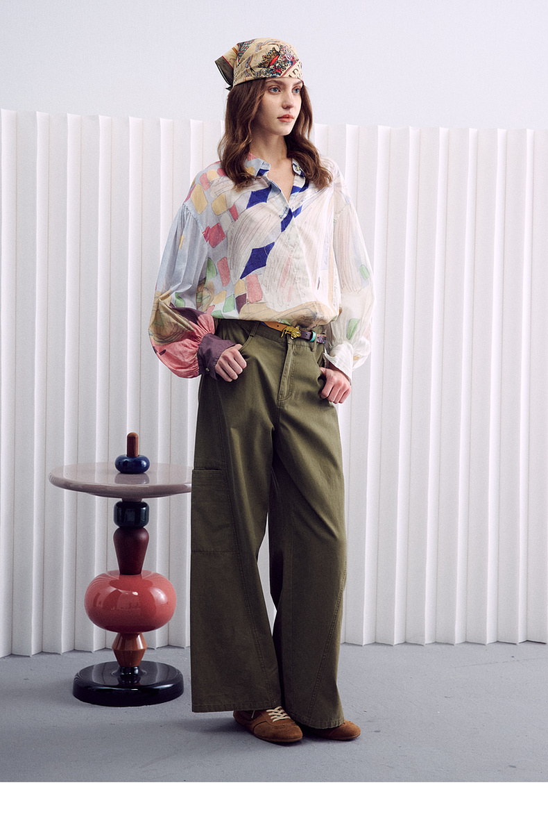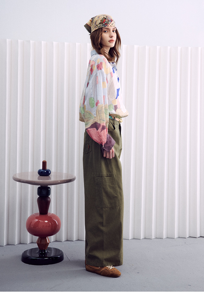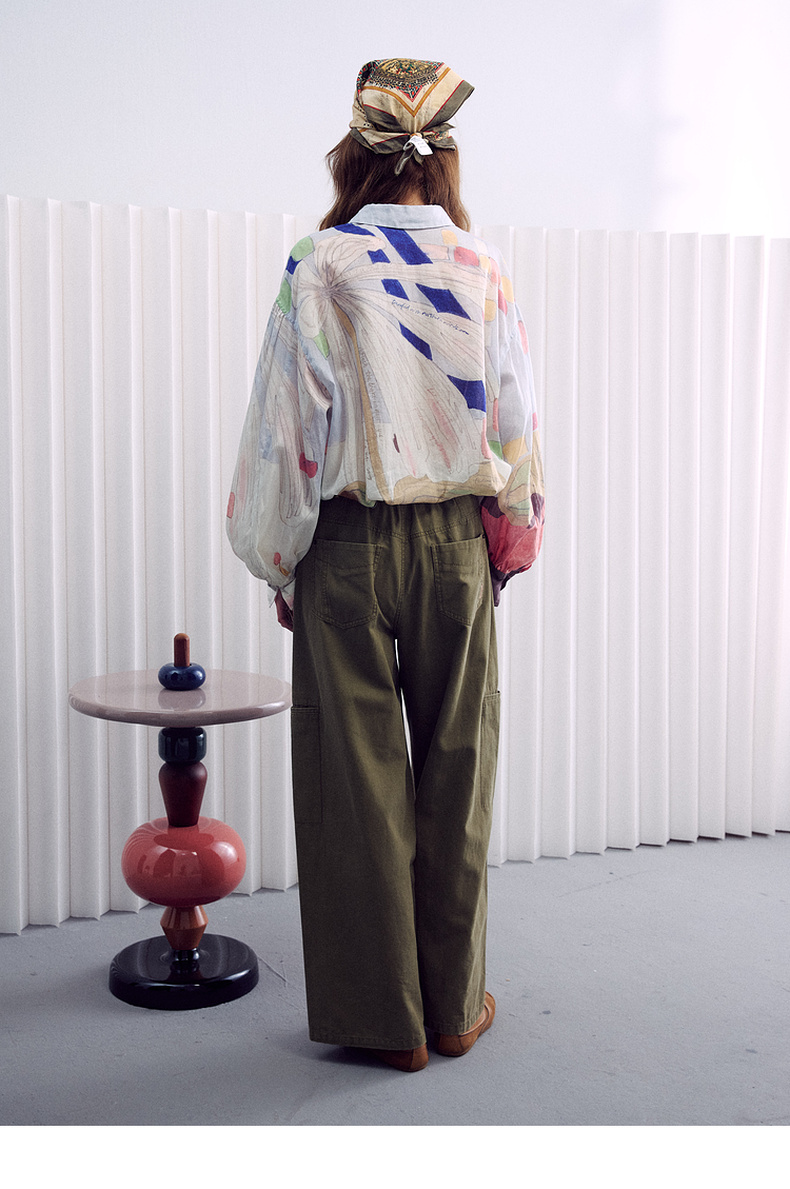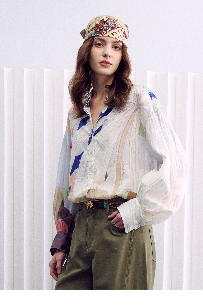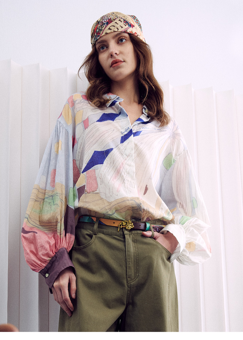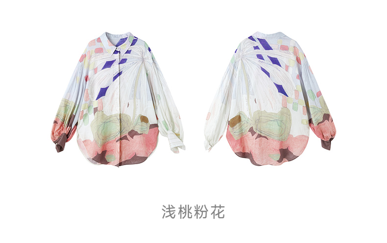 谜底大廓形衬衣长袖2026春季新品粉彩调定位印花衬衫女261MC0255