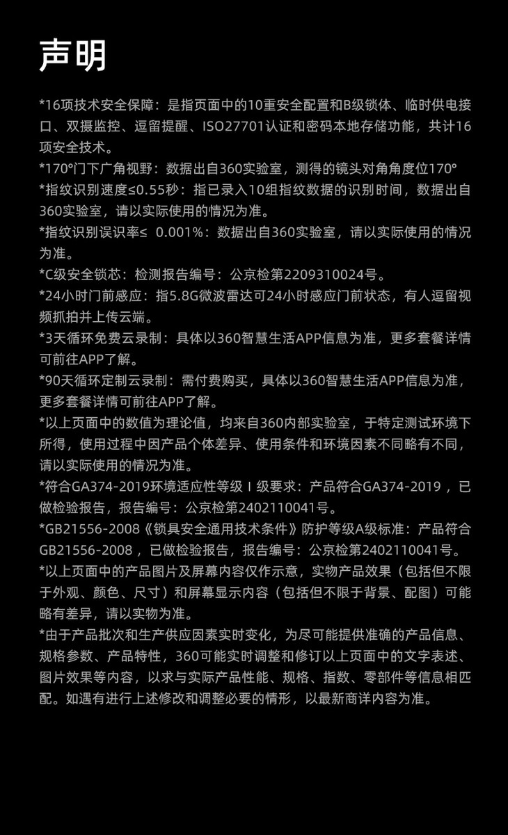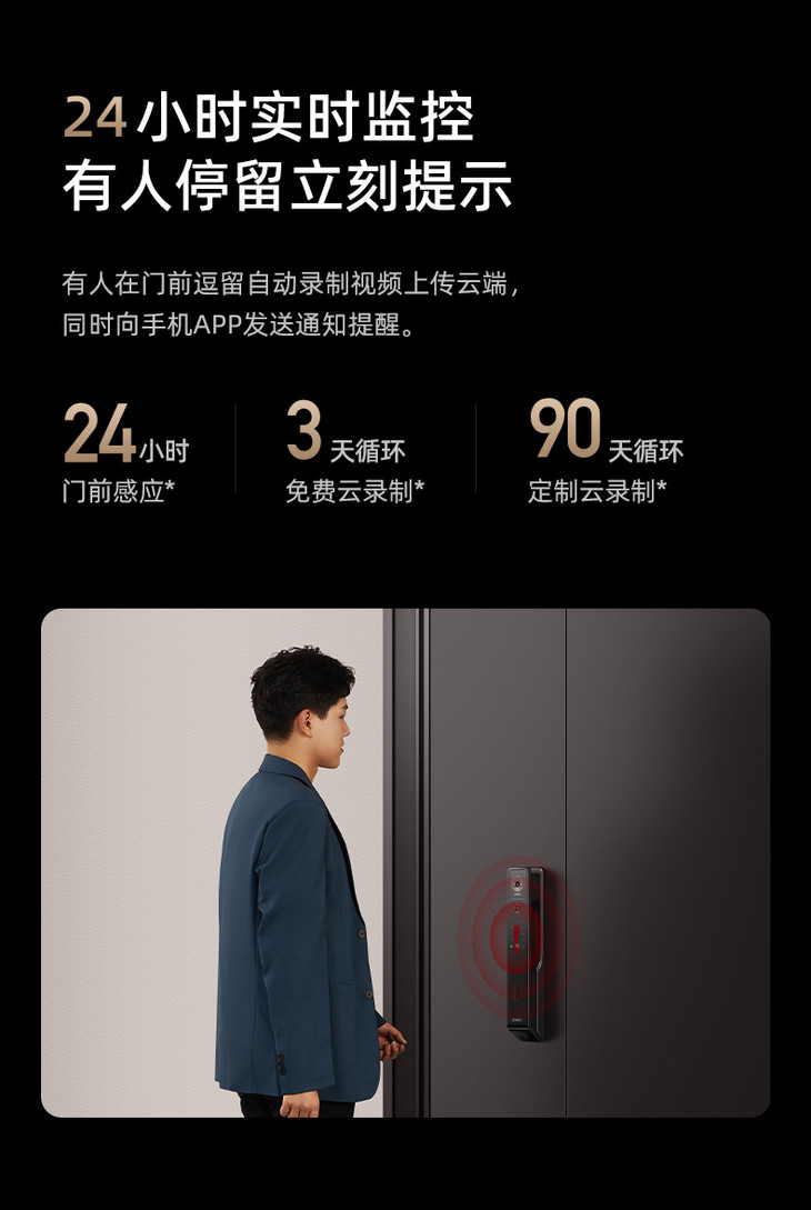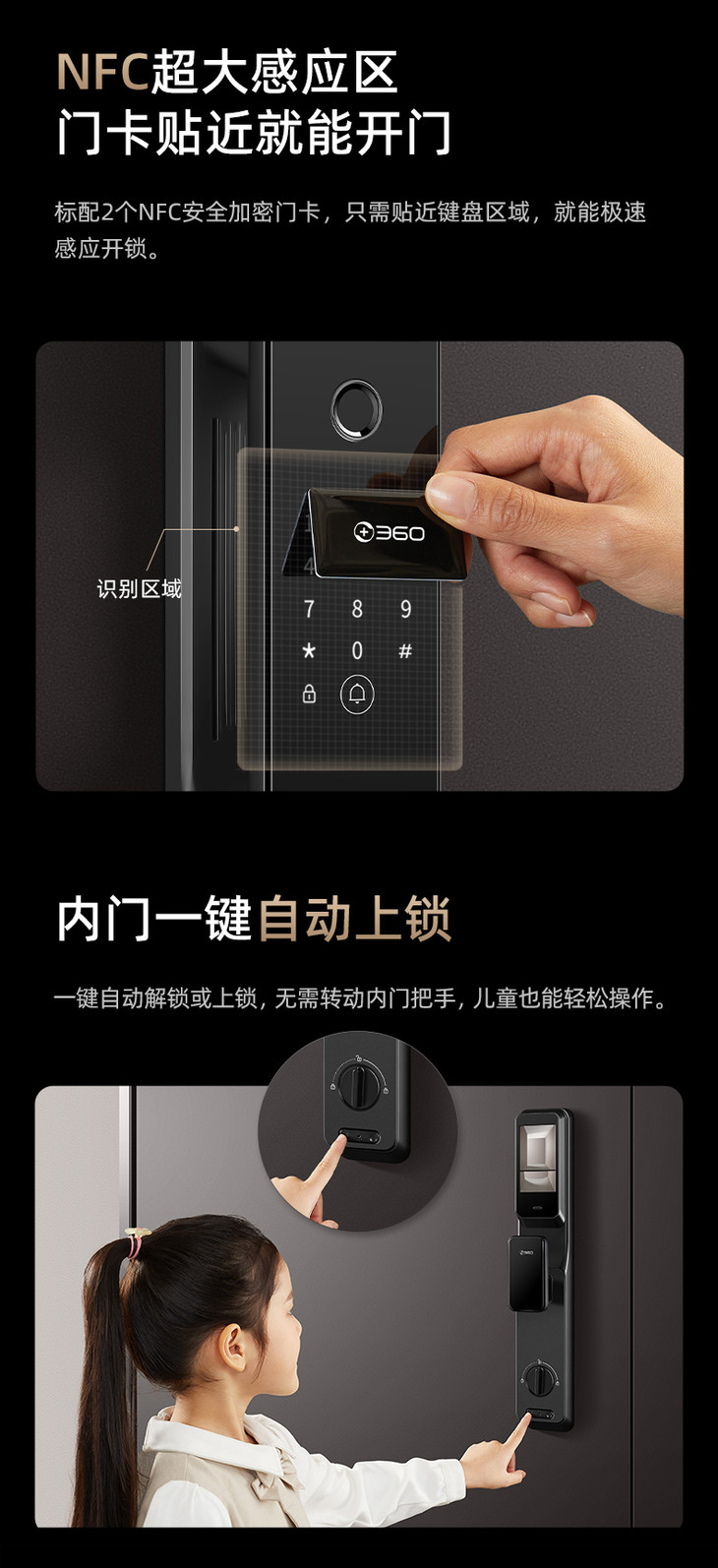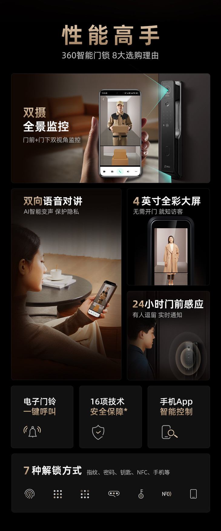 【专属】360智能门锁 V30 双摄全景监控 4英寸全彩大屏 AI指纹解锁 双向语音对讲