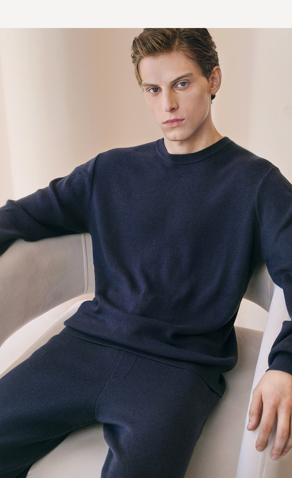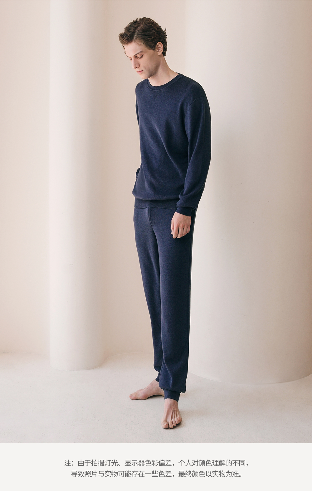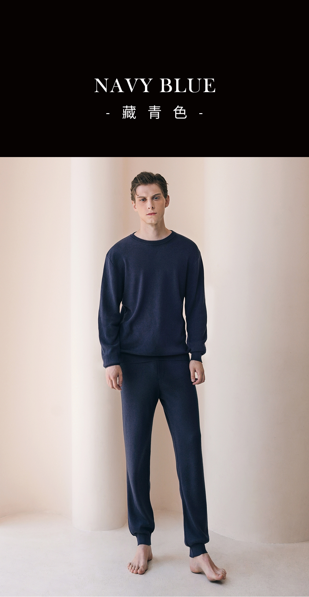 Solo seta男士纯色绵羊毛桑蚕丝山羊绒睡衣套装25春季保暖家居服