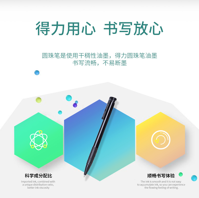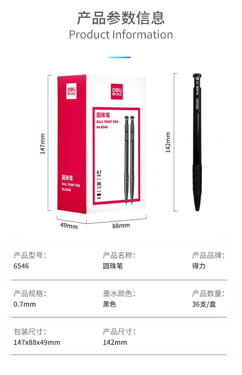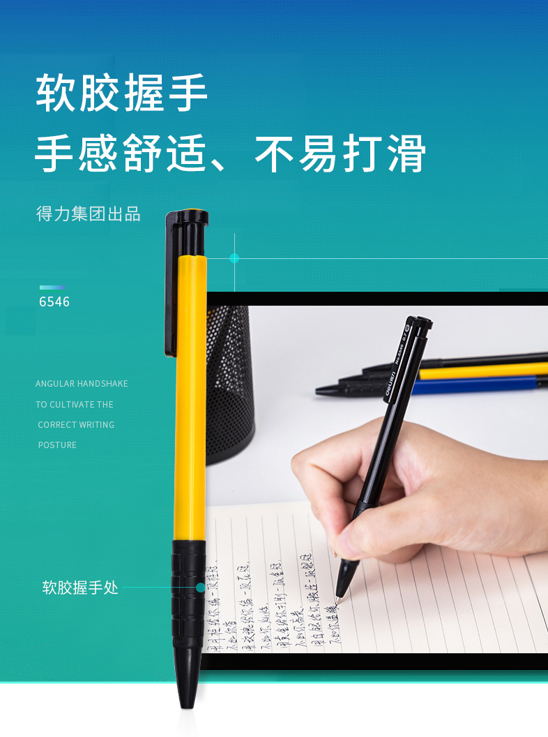 【仅供集采】得力文具180支 6546圆珠笔按压式蓝色0.7子弹头多色中油笔学生用商务办公男女士创意高档36支黑批发书写工具