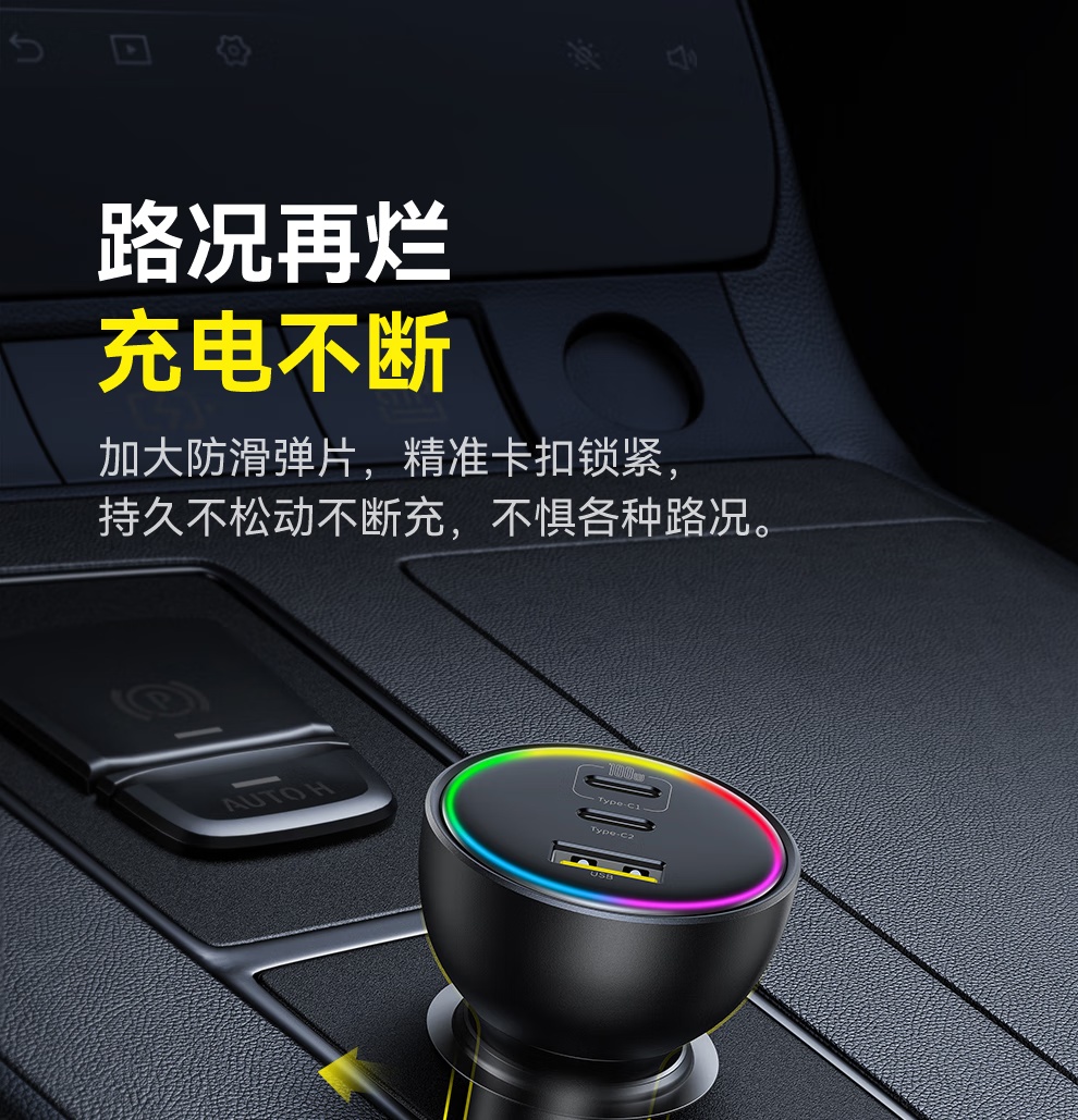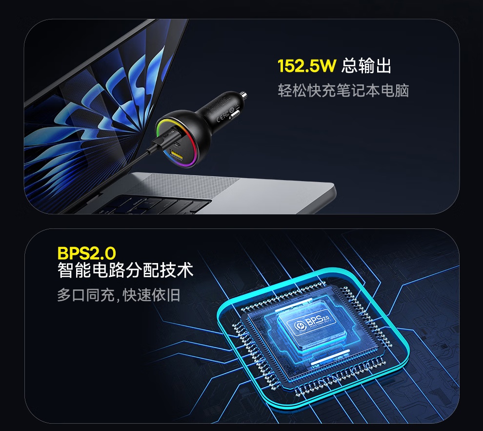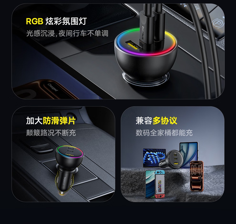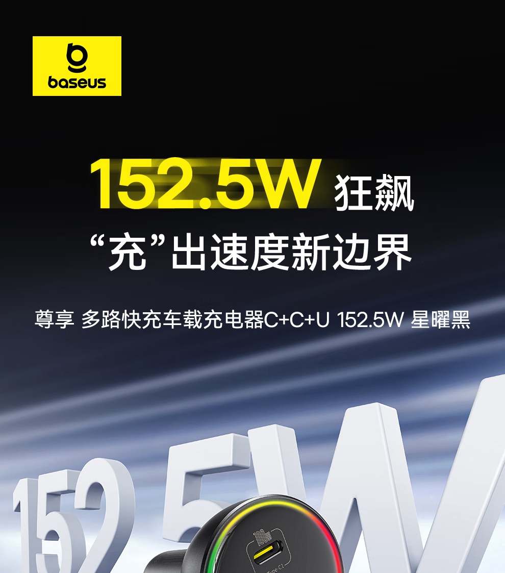 【京东热销4W+】倍思 尊享 多路快充车载充电器C+C+U 152.5W 超级快充点烟器充电头PD100W转换器一托三 可充笔记本平板手机
