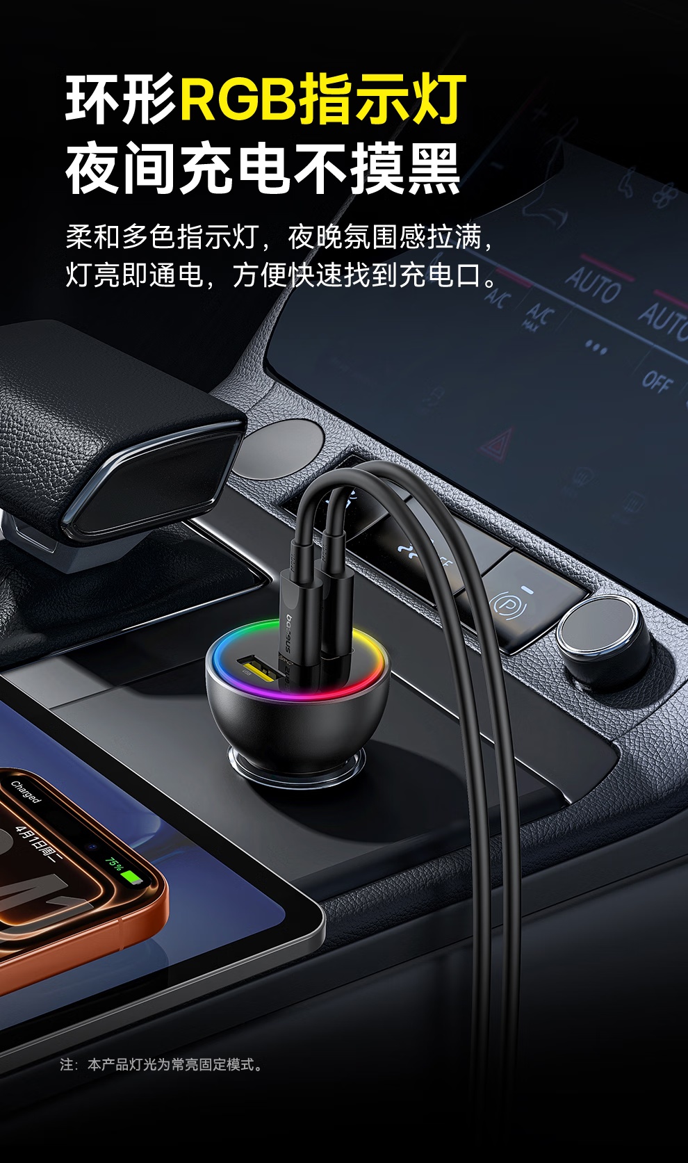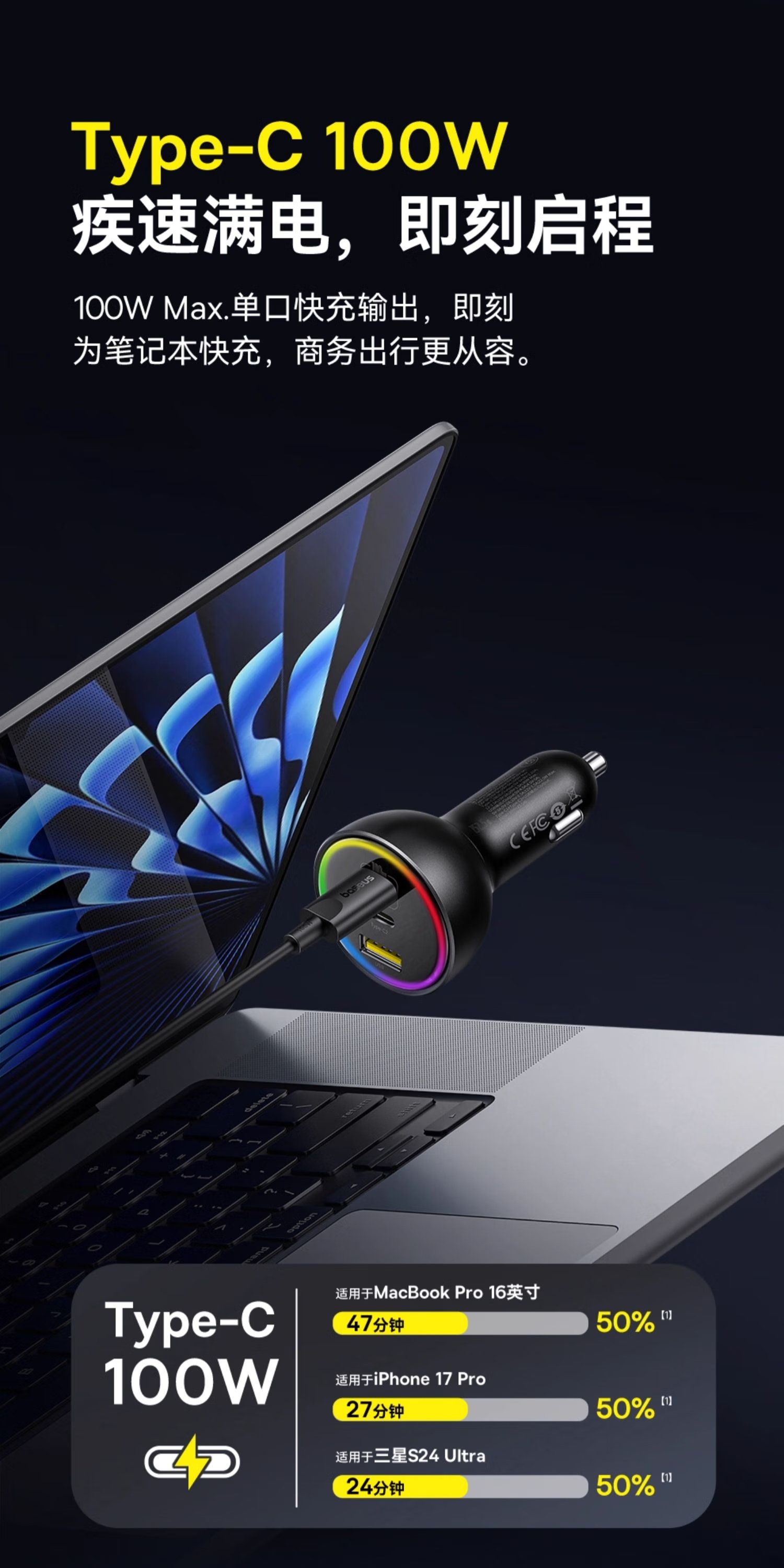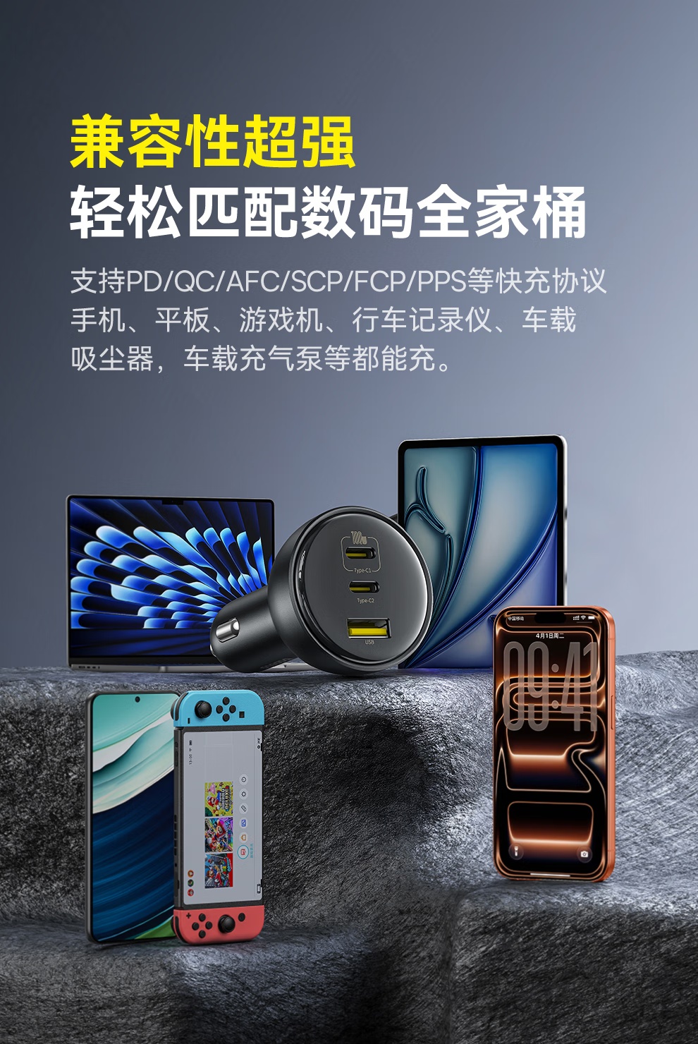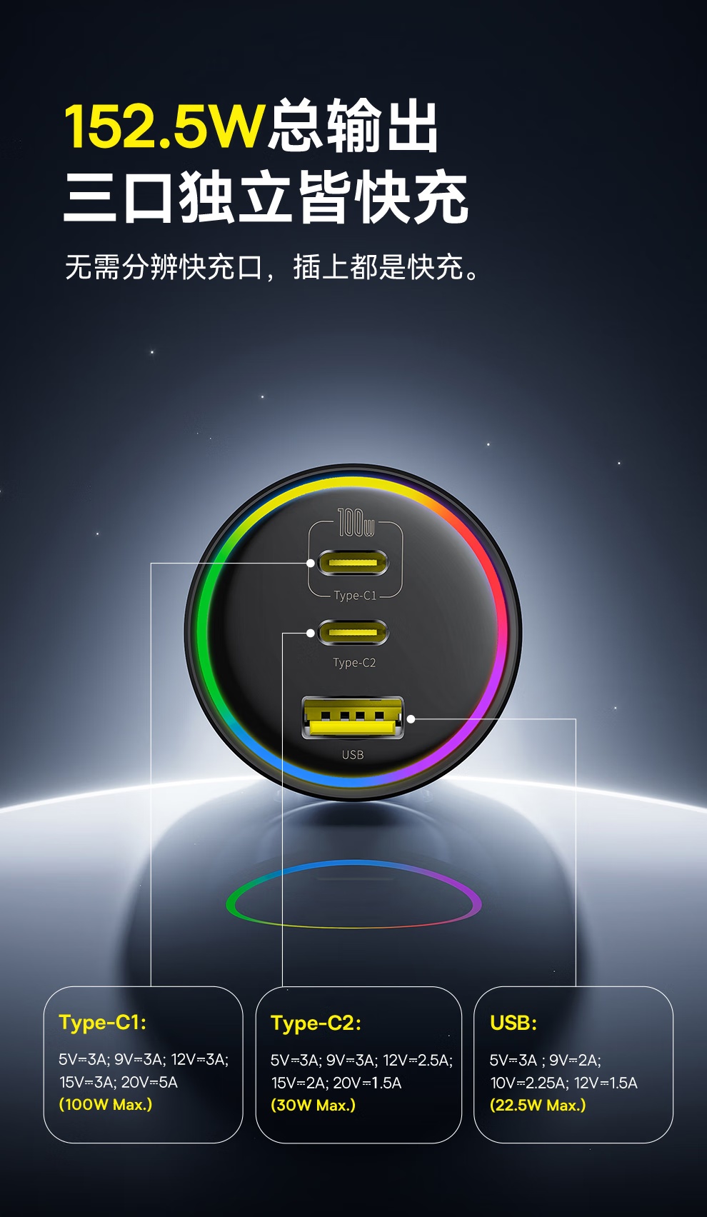 【京东热销4W+】倍思 尊享 多路快充车载充电器C+C+U 152.5W 超级快充点烟器充电头PD100W转换器一托三 可充笔记本平板手机