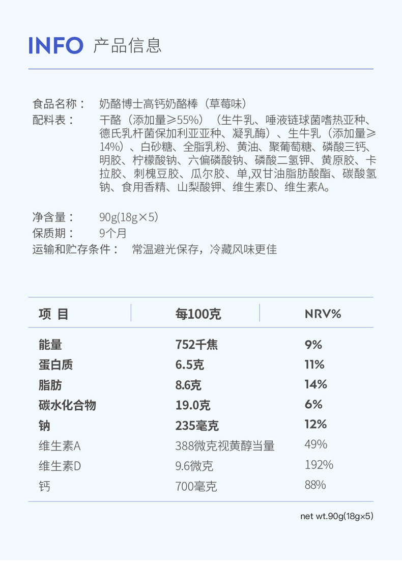 【奶酪博士】≥55%干酪添加量高钙奶酪棒90g