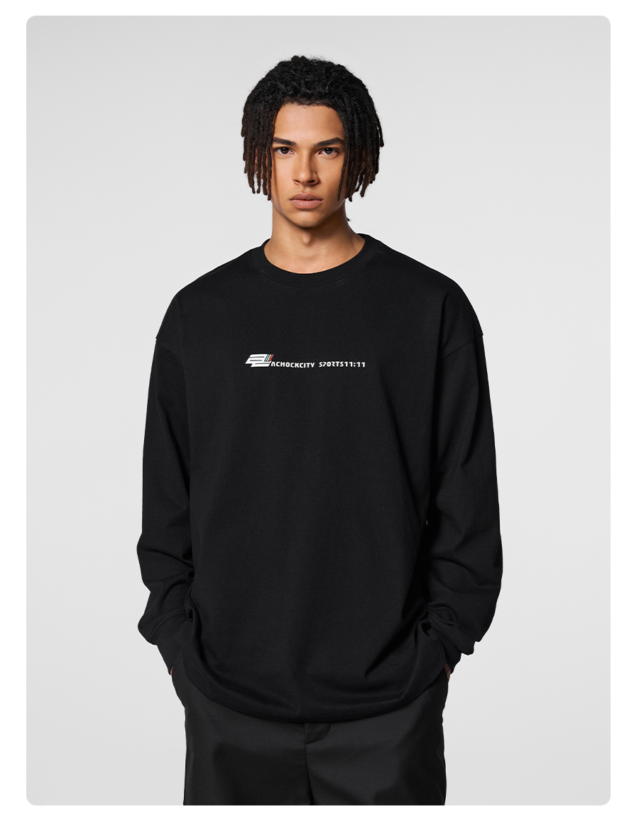 【Achock官方店】潮牌简约纯色字母印花打底长袖美式高街圆领T恤