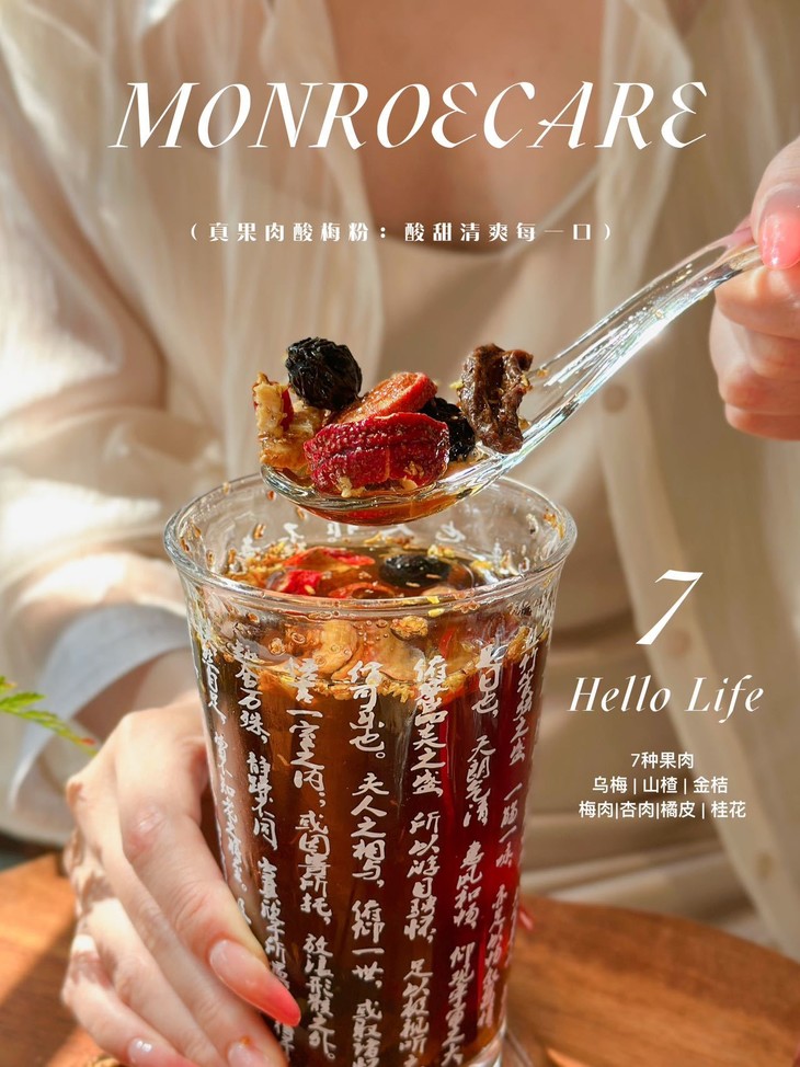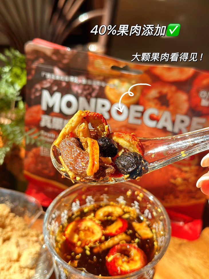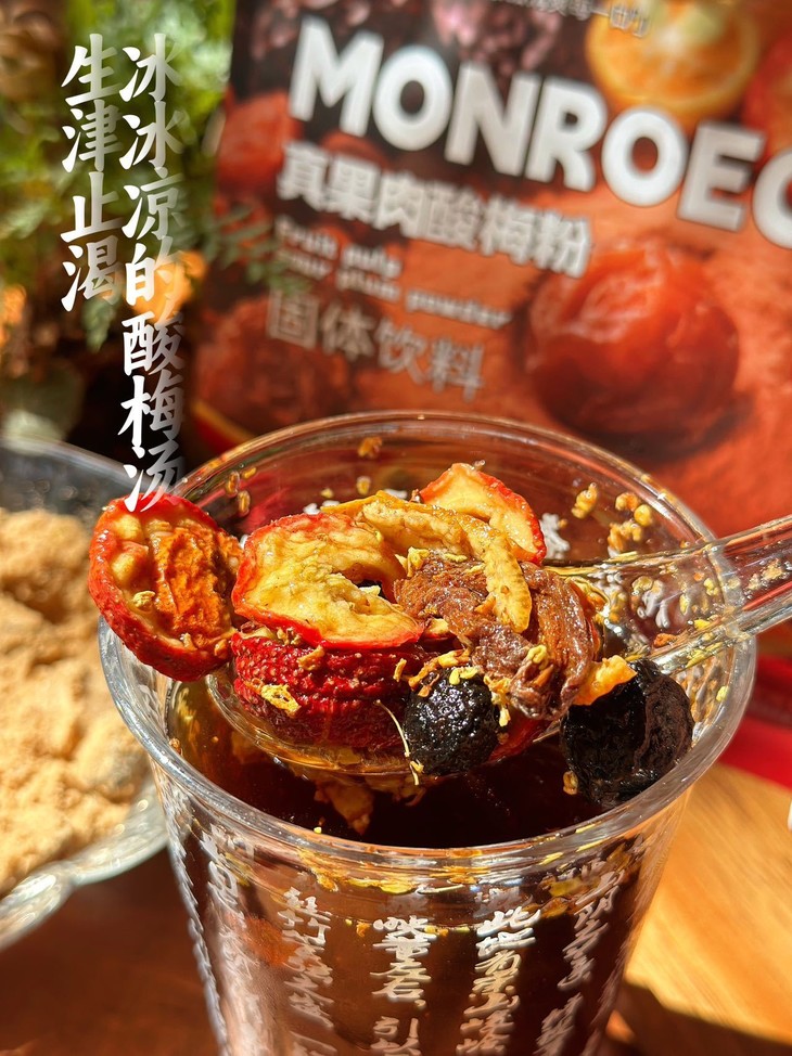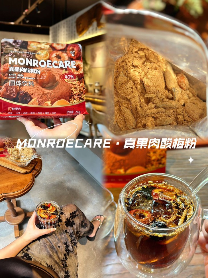 MONROECARE·真果肉酸梅粉 添加了40%大颗粒果肉🍒 肉眼可见的真·大块果肉哦 ✅️手磨古法酸梅粉百年正宗味道 ✅️7种药食同源好食材,大颗粒果肉看得见