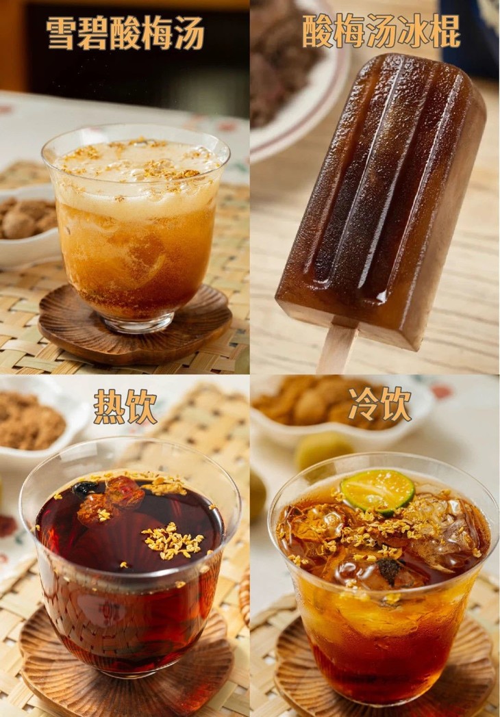 都参照了古法配伍: 首先乌梅,是酸梅汤的灵魂; 乌梅本身就有开胃的作用, 还能能舒缓疲劳,解夏乏。 它属于碱性食物、能生津止渴 提神醒酒、抗疲劳 肝火旺的人尤为适合!