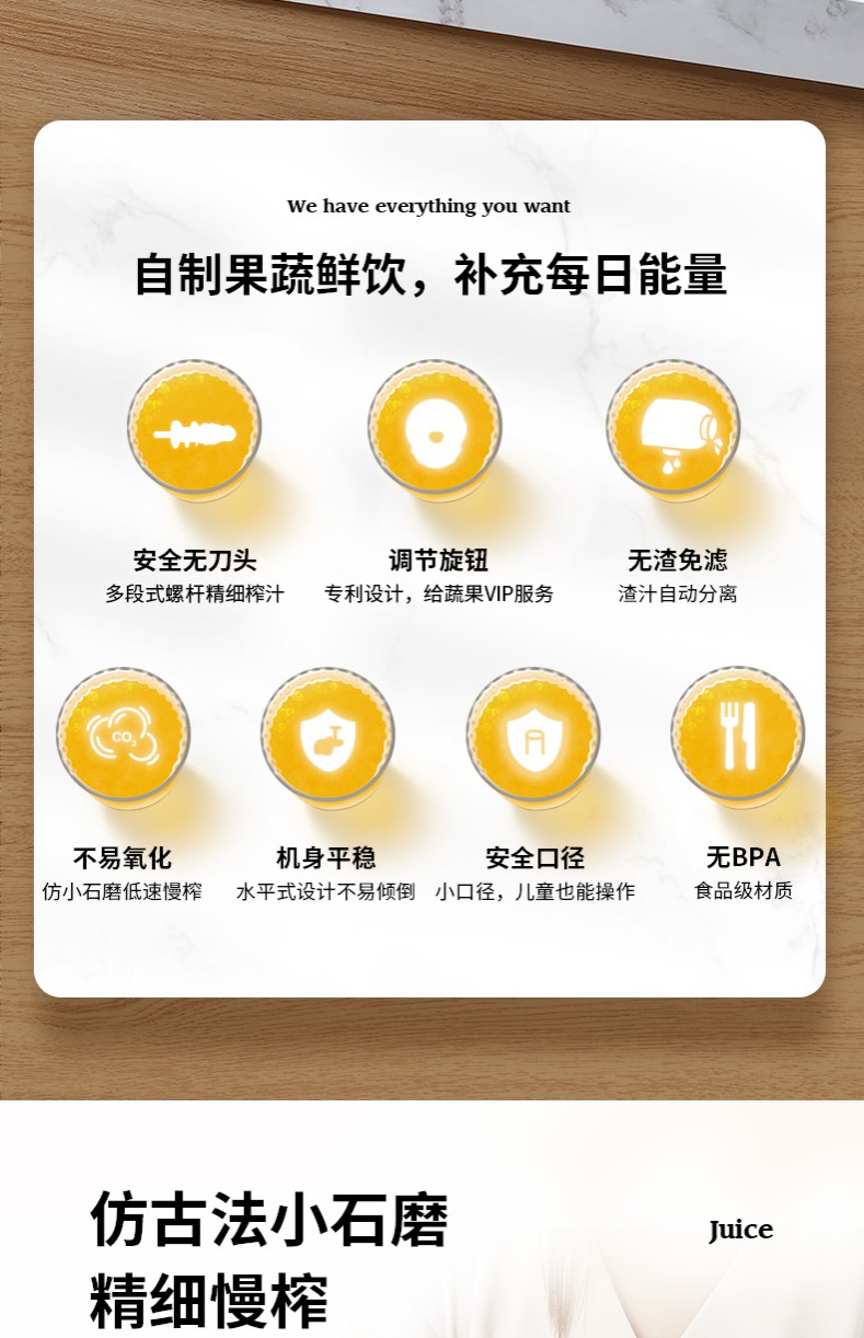 【无渣免滤】欧美爵士 原汁机 慢磨精榨果汁细腻无渣感自制果蔬鲜饮