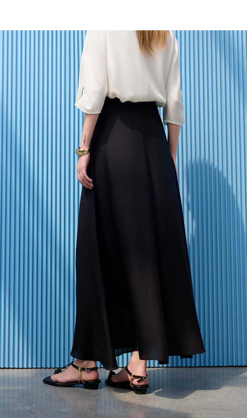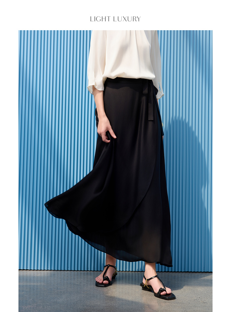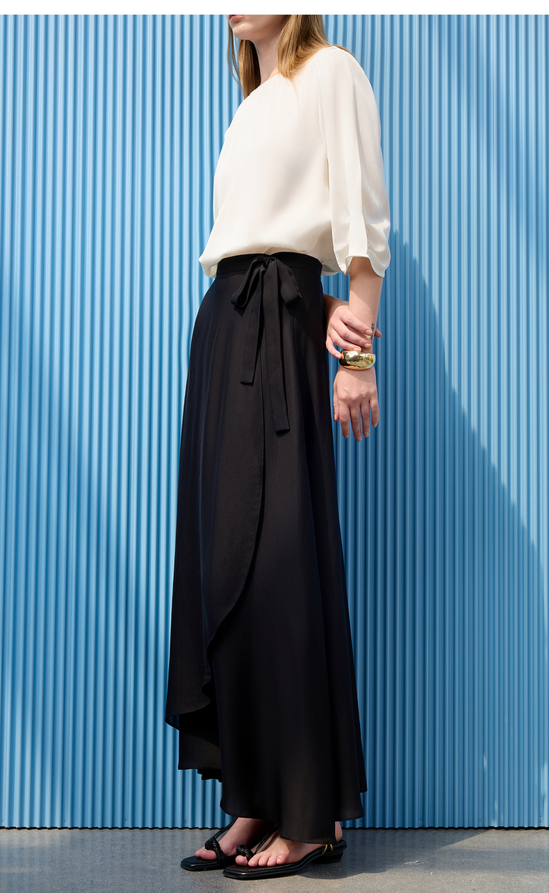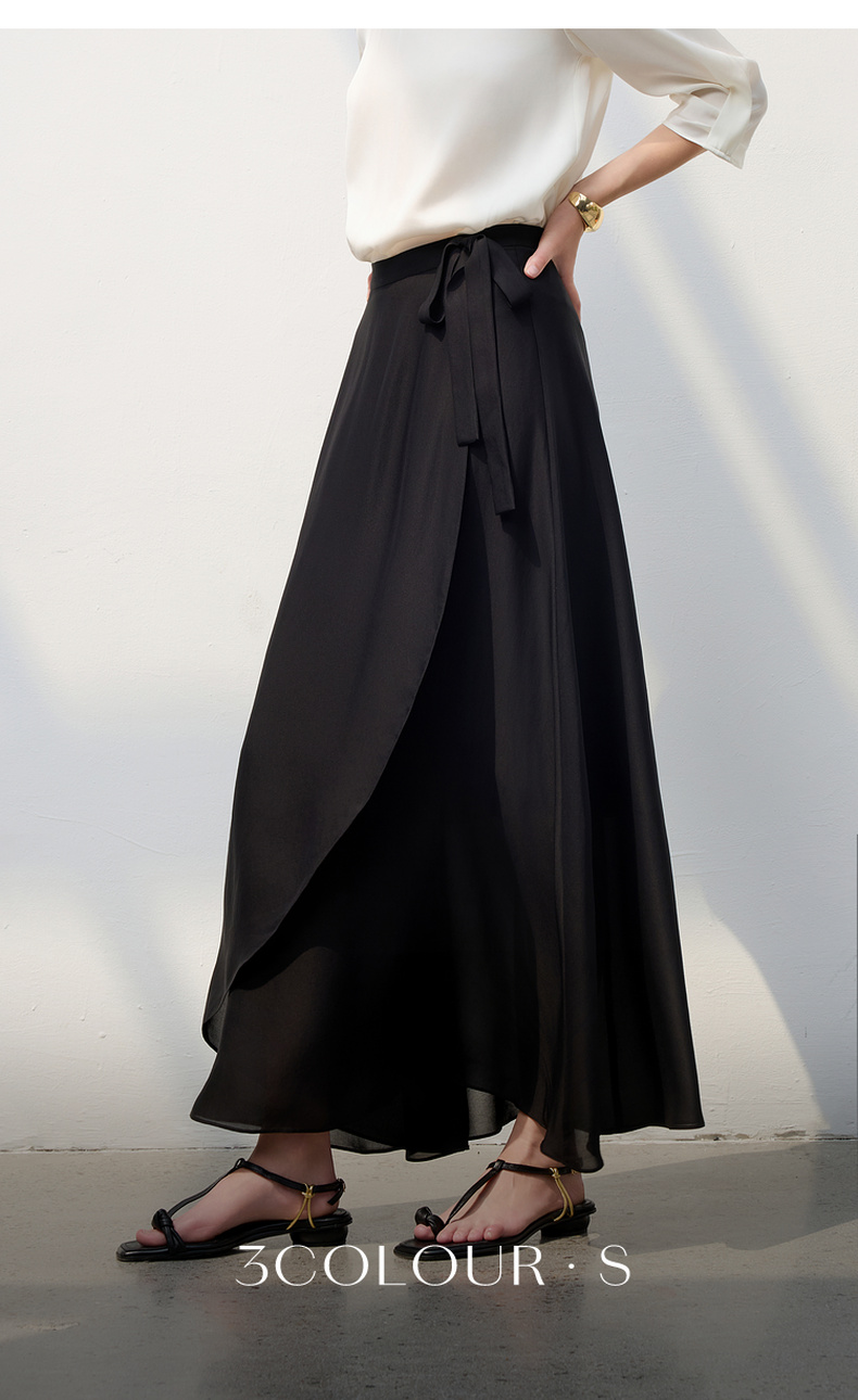 三彩2025夏季新醋酸半身裙解构假围裹A字裙极简风长裙显瘦气质S