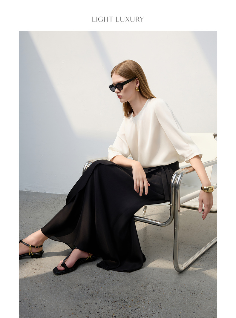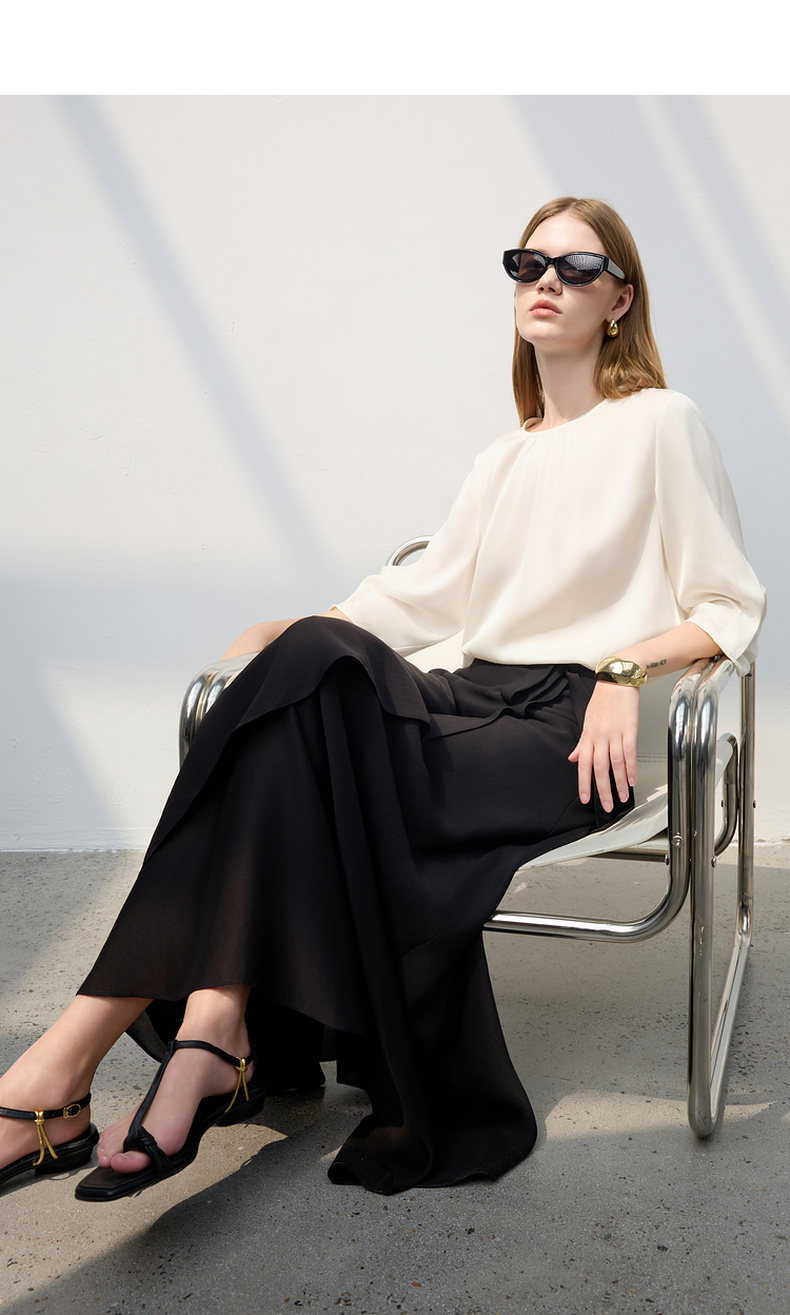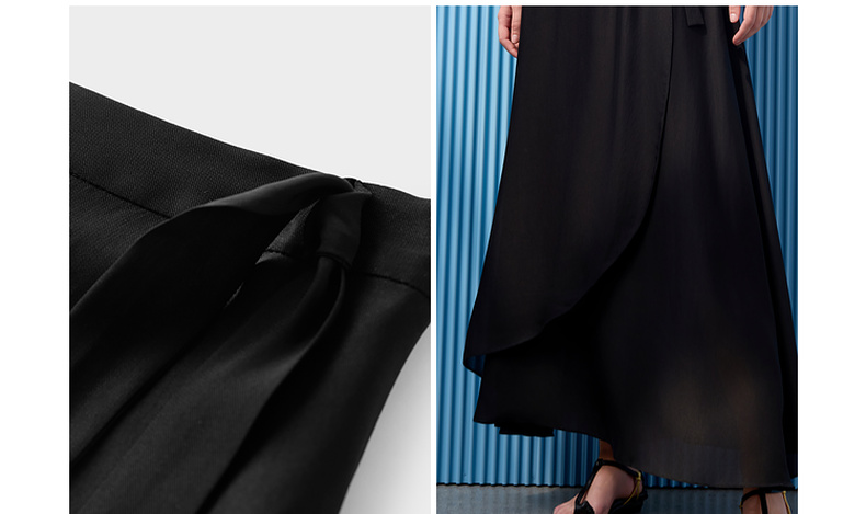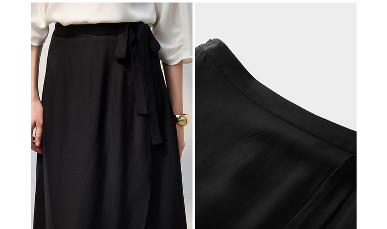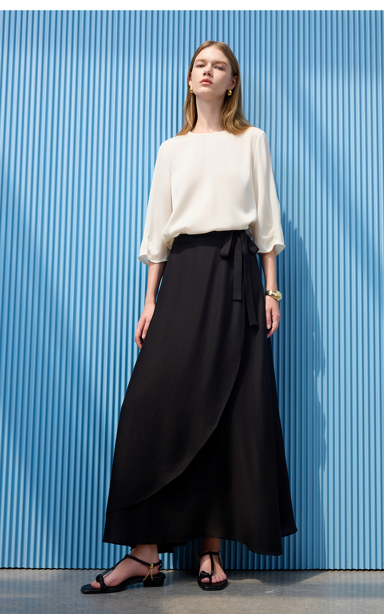 三彩2025夏季新醋酸半身裙解构假围裹A字裙极简风长裙显瘦气质S