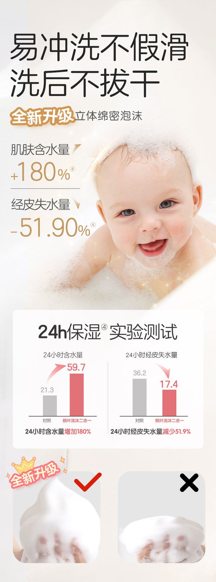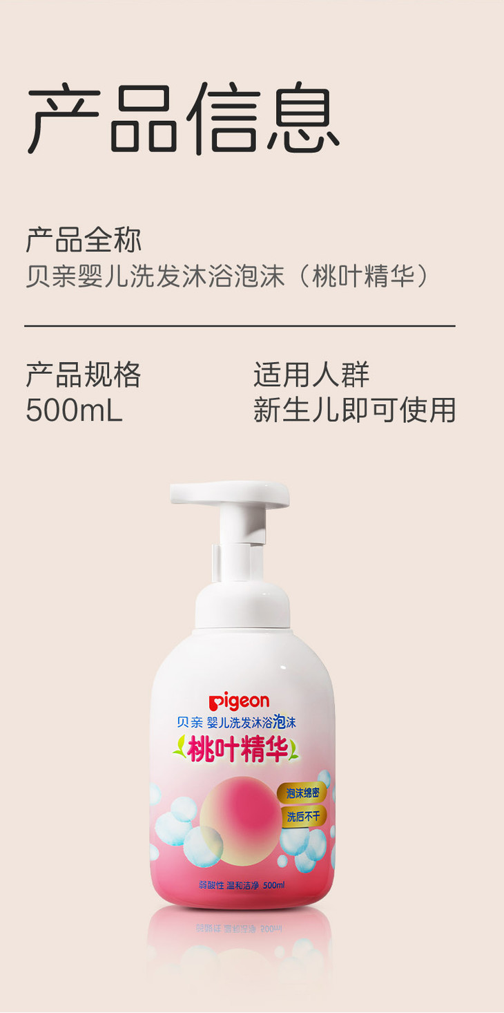 【沐浴泡沫2件装】奚梦瑶推荐!PIGEON/贝亲婴儿洗发沐浴泡沫*2组合(桃叶精华)