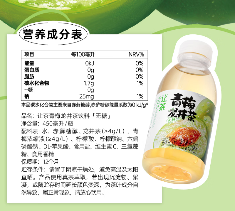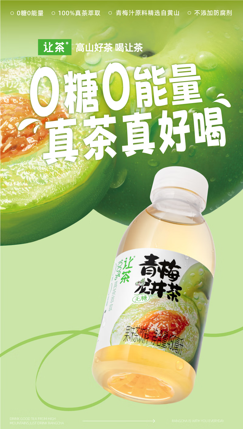 让茶无糖青梅龙井果味茶饮料450ml*15瓶整箱装