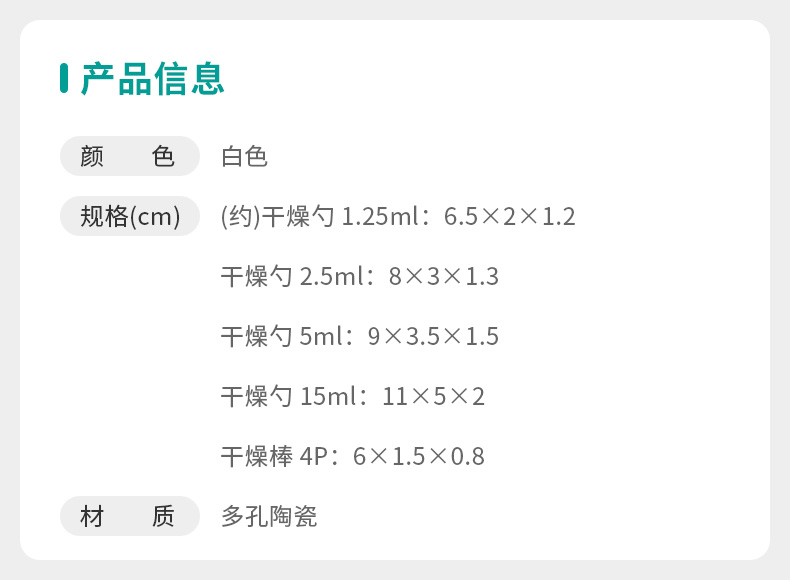 多孔陶瓷干燥勺 约2.5ml/5ml