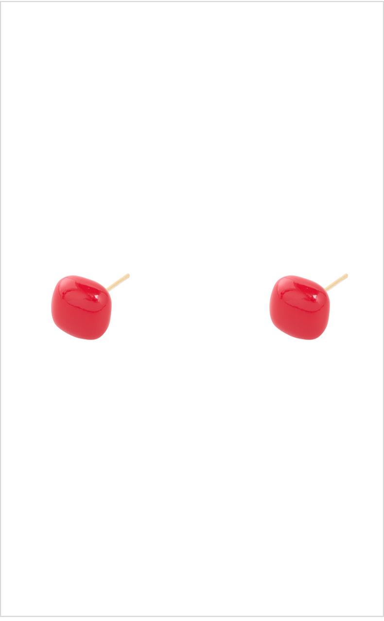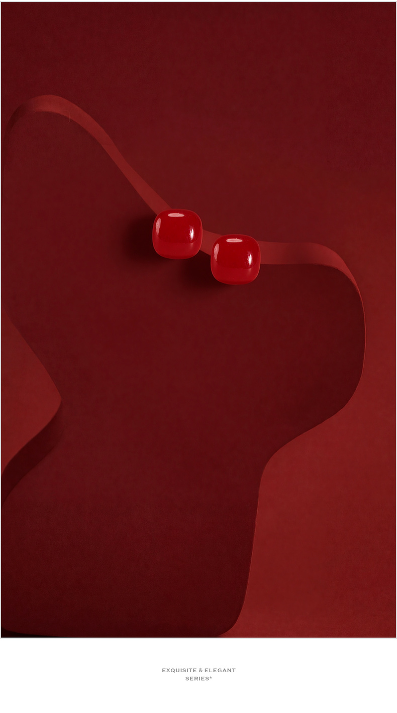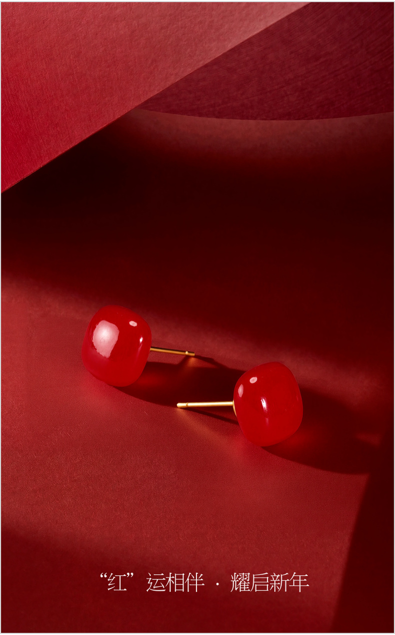 三彩2026新款红色方形珍珠耳钉S925银针国风甜酷节庆通勤氛围感