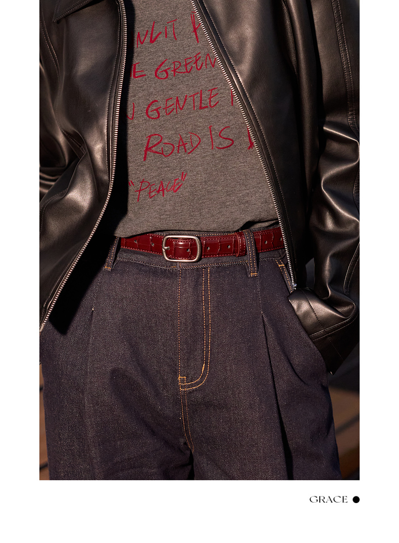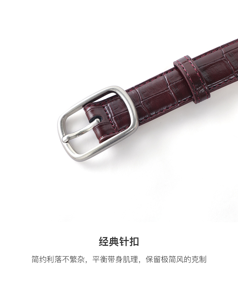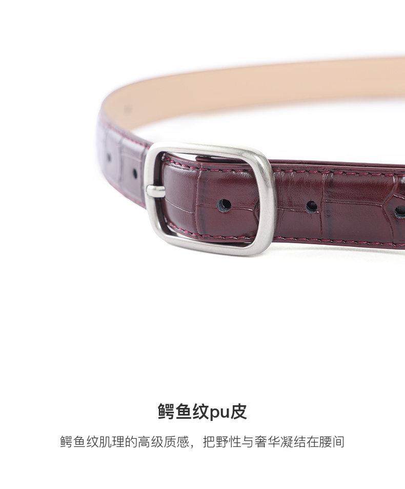 三彩2026新款极简风鳄鱼纹腰带pu皮高级复古轻熟百搭职场干练女