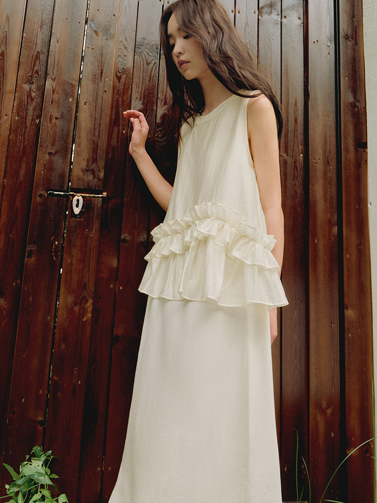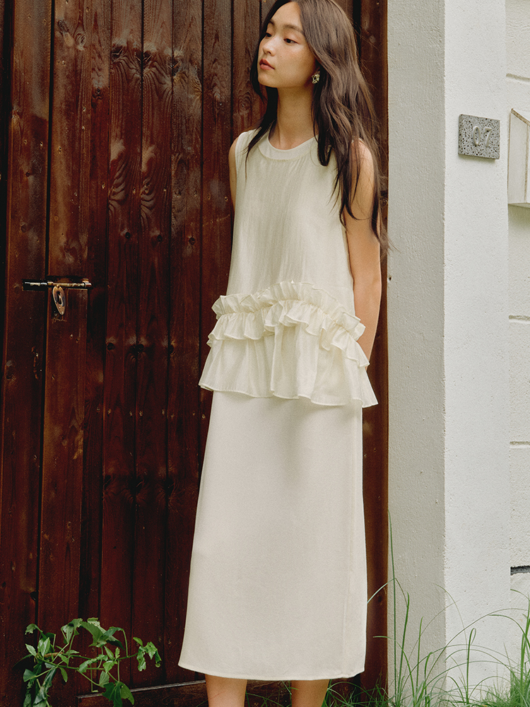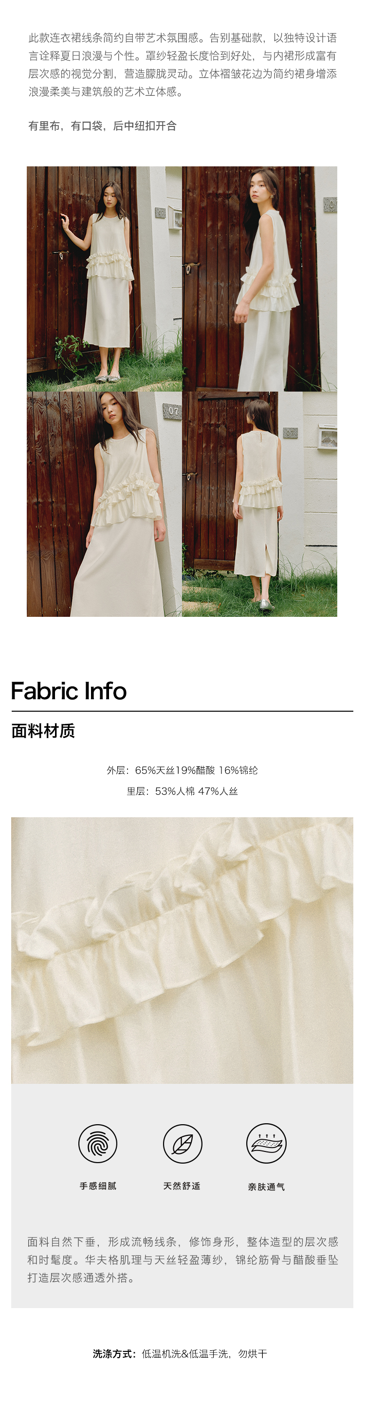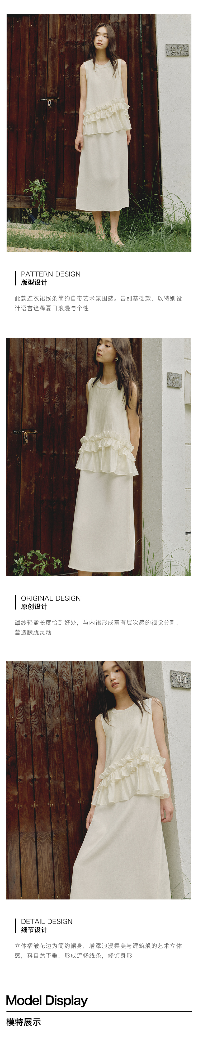 ForPoem 现货 25/SS原创设计轻薄透气荷叶边双层假两件连衣裙