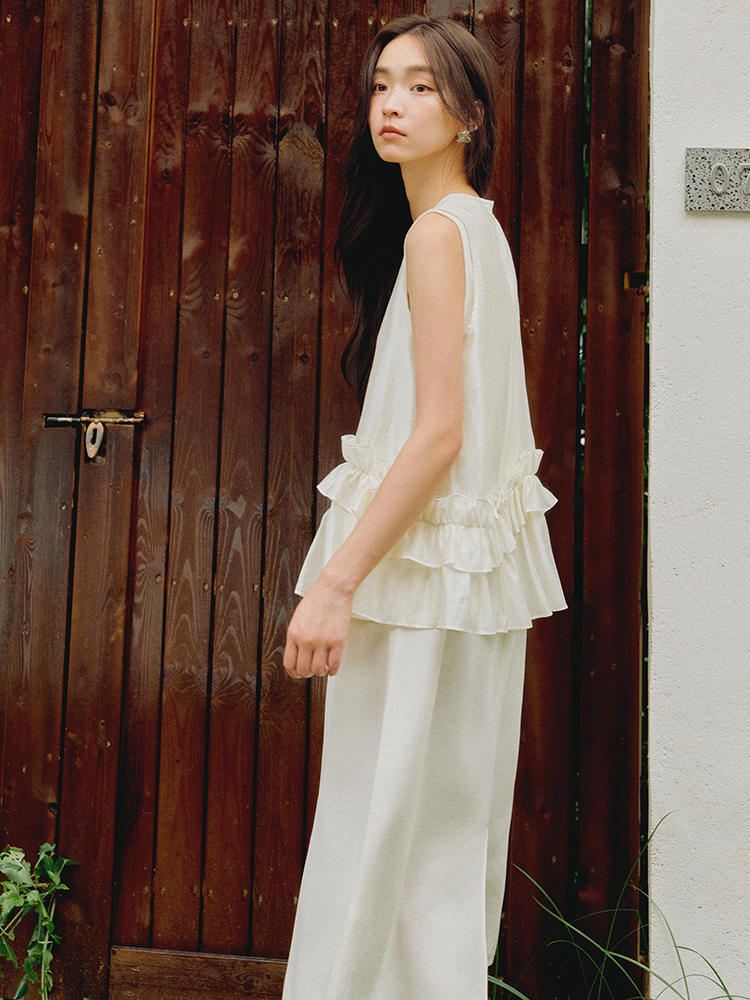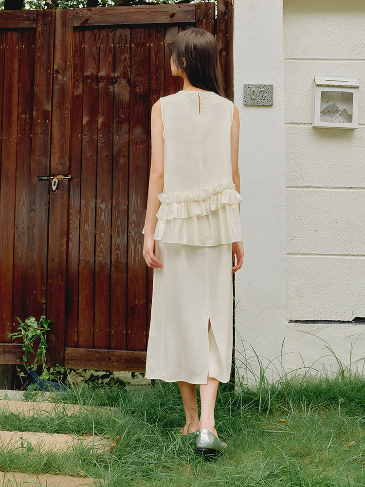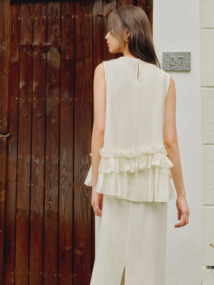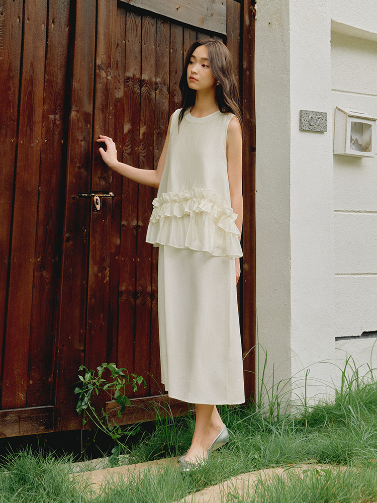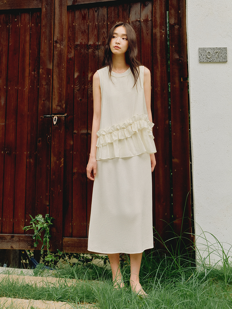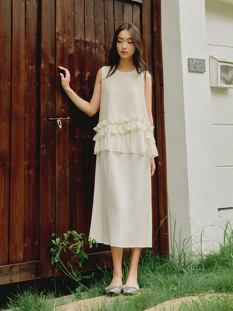 ForPoem 现货 25/SS原创设计轻薄透气荷叶边双层假两件连衣裙