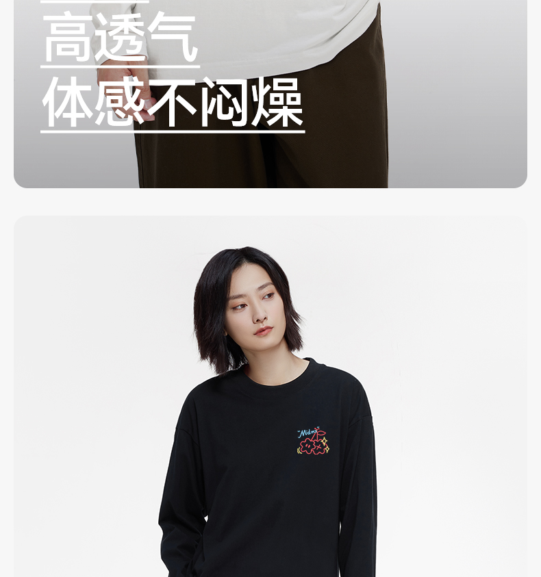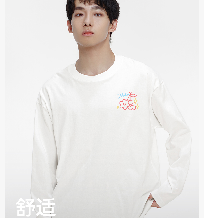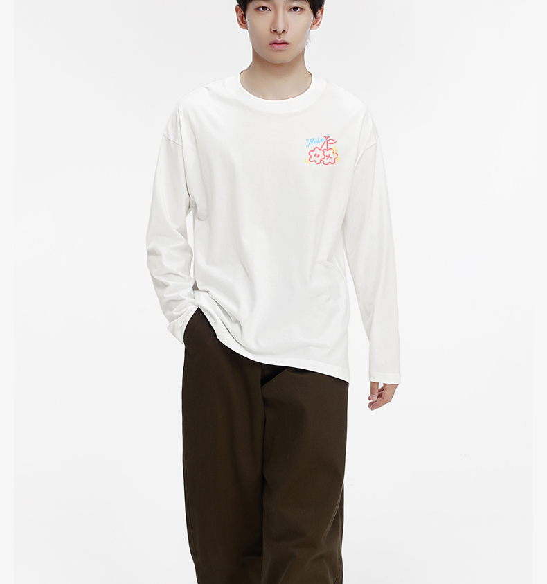 「棉的美学」纯棉长袖t恤女秋冬韩系宽松圆领卡通印花上衣打底衫ins