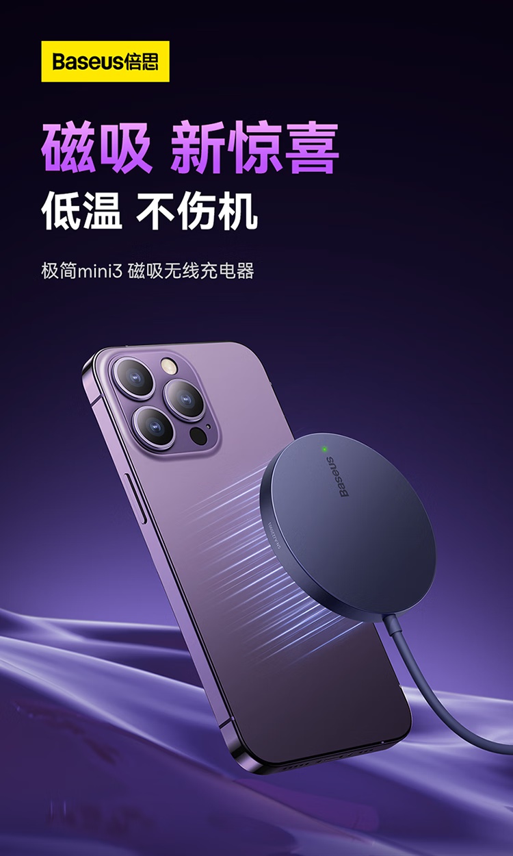 倍思 极简Mini3 Magsafe磁吸无线充电器 15W BS-W529