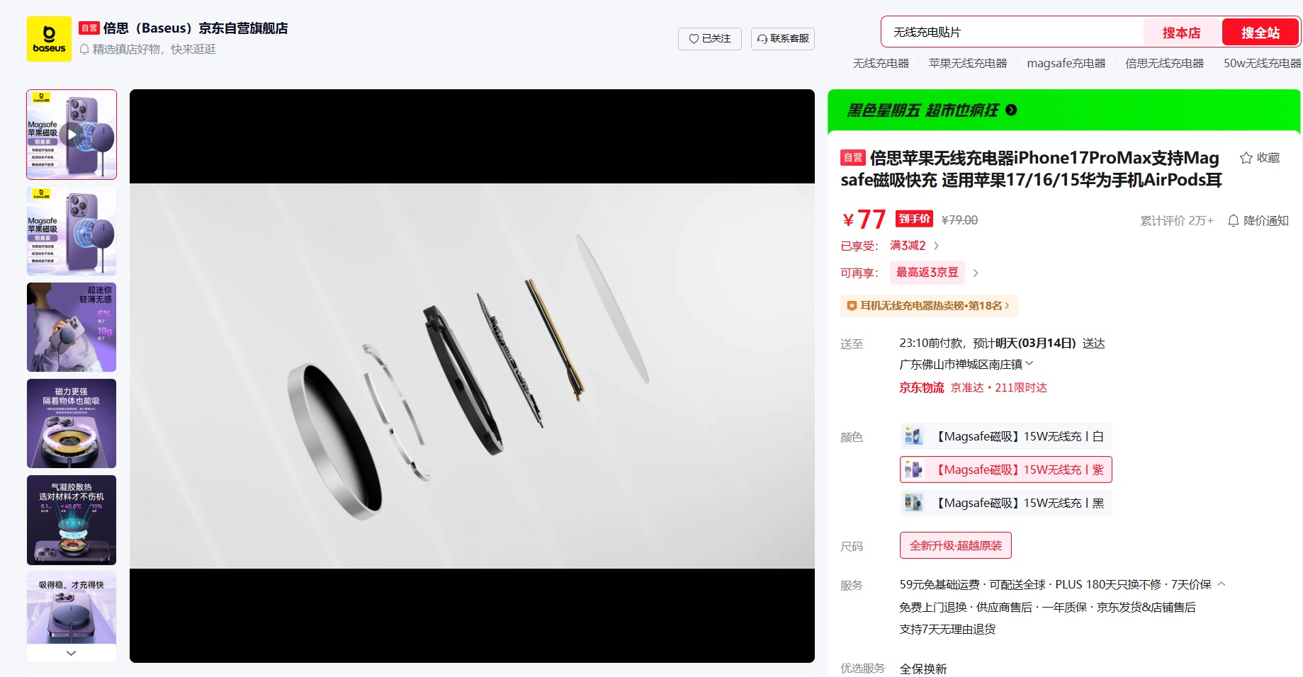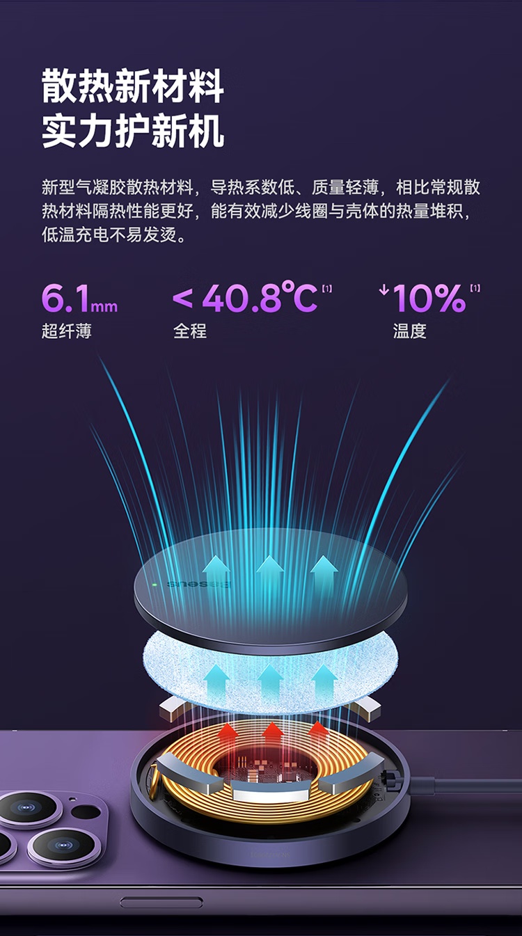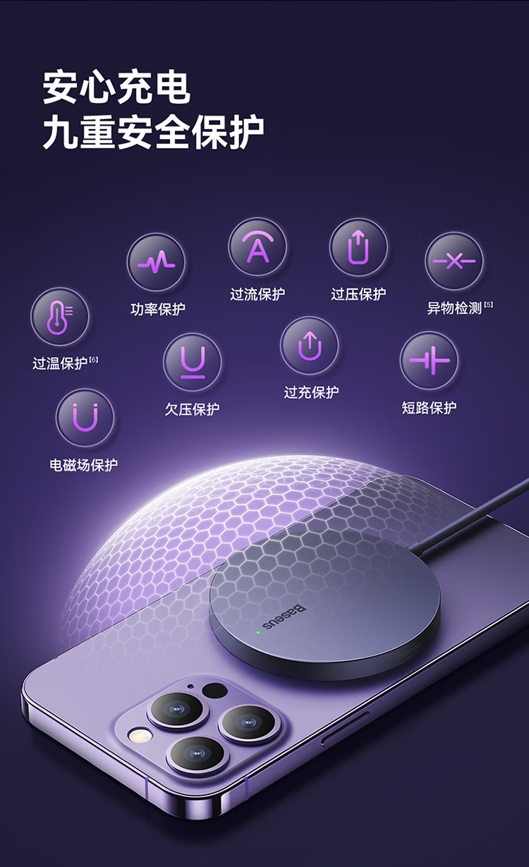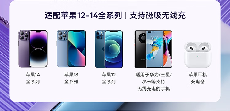 注意!安卓手机需搭配磁吸环使用才吸得住,苹果手机脱壳磁力很强,如果要带壳充,推荐要又磁吸环的