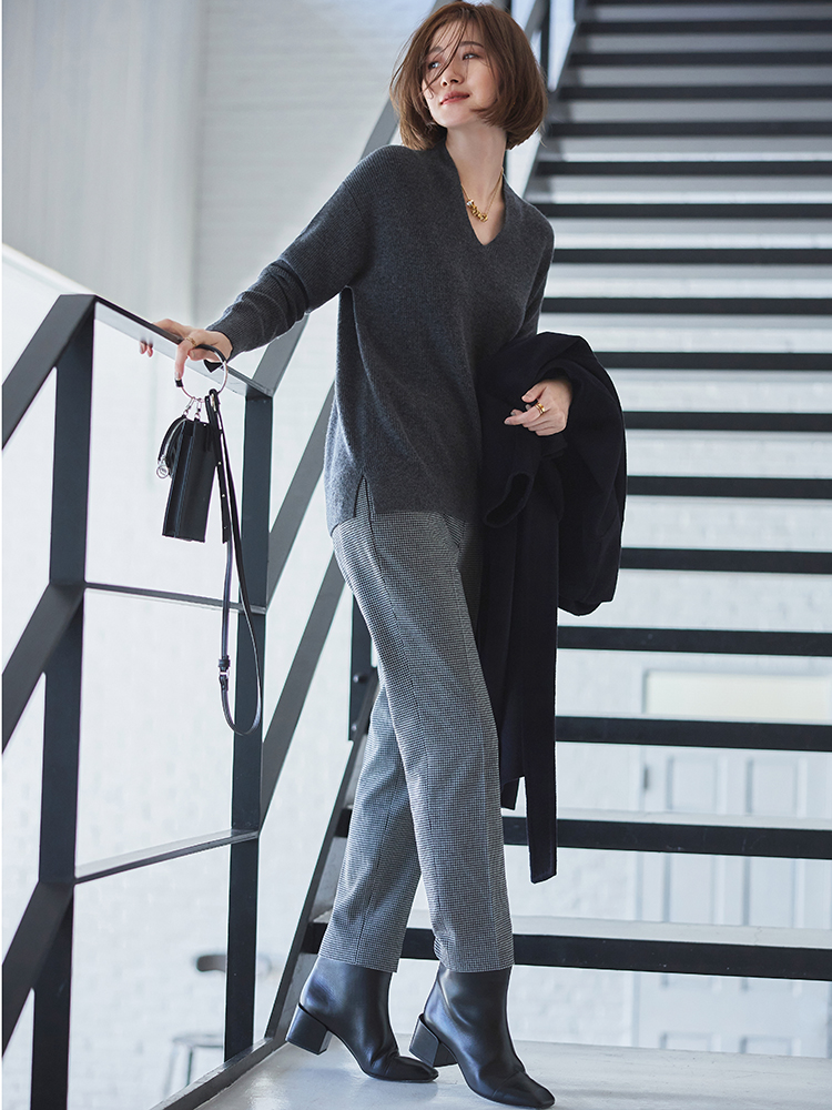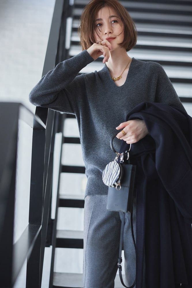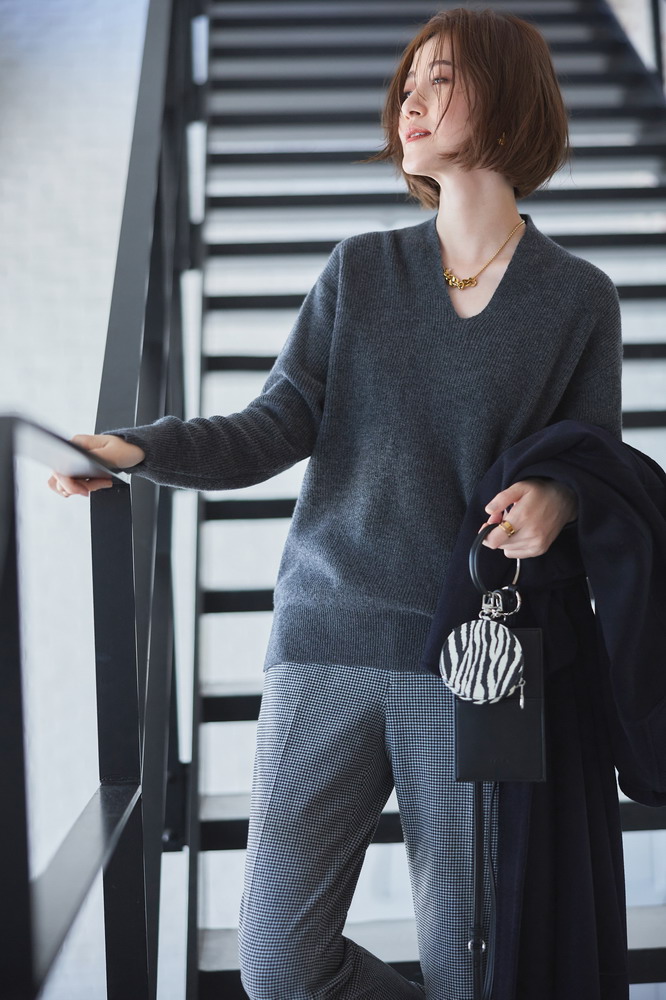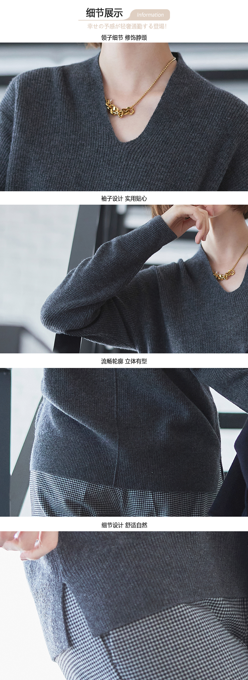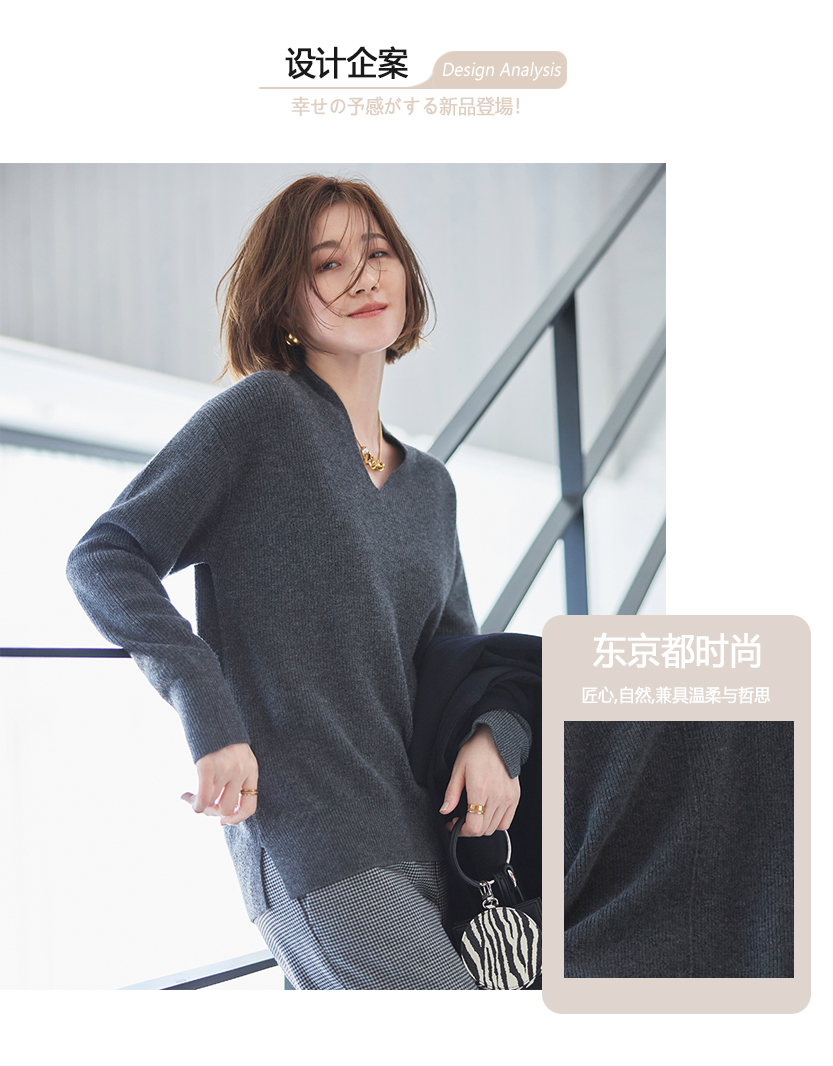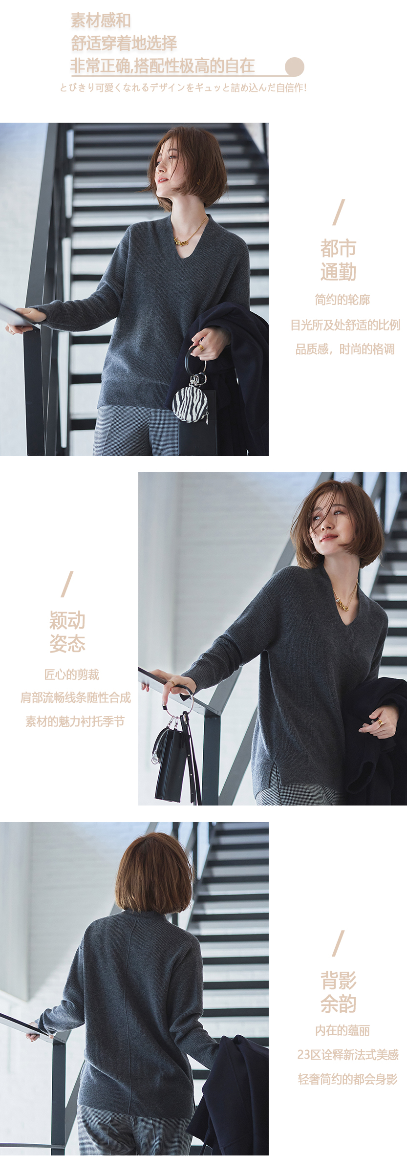 23区日系秋季通勤宽松羊毛羊绒混纺V领套头毛衣针织毛衫商场同款